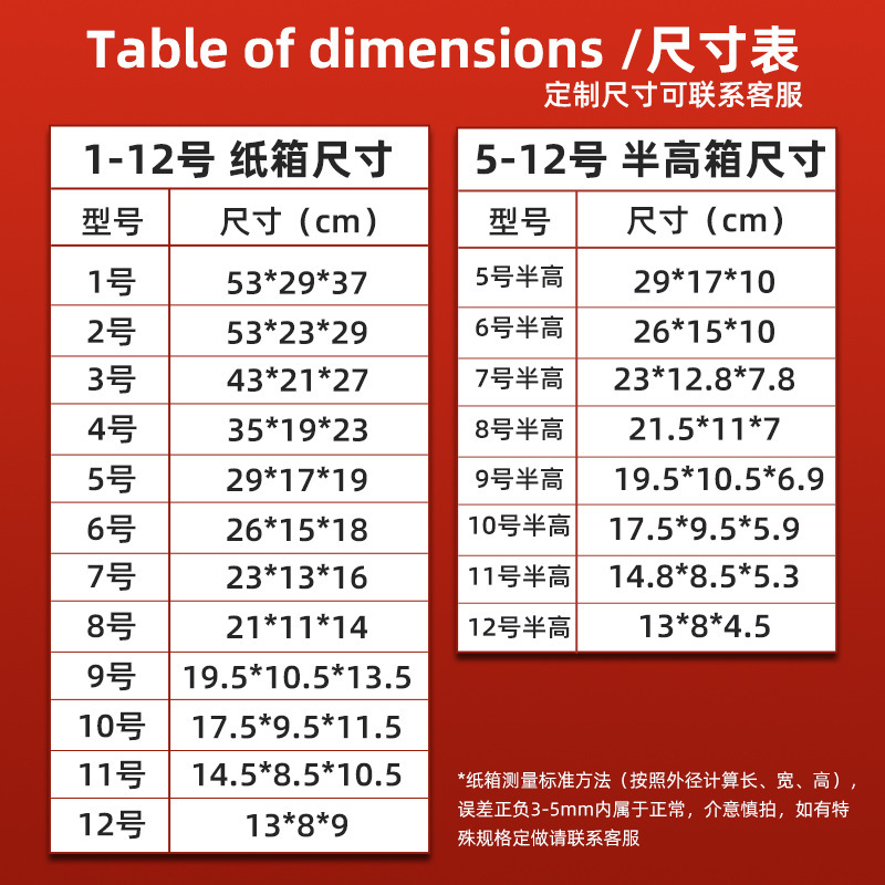 规格型号 | 3号(43*21*27cm);5层KK特硬 | | 规格型号 | 3号(43*21*27cm);5层AA加硬 |