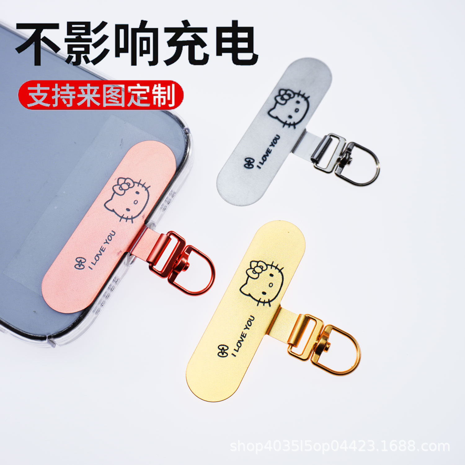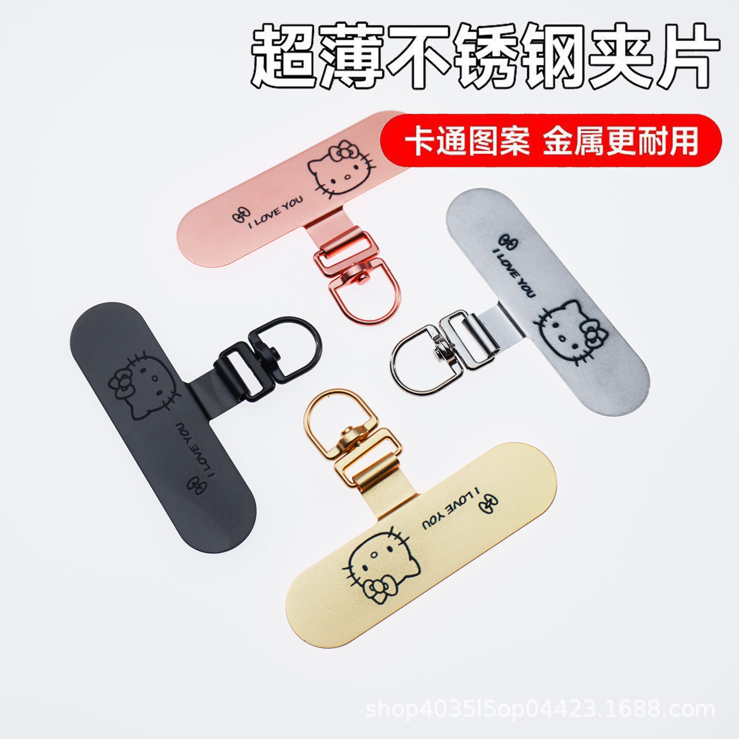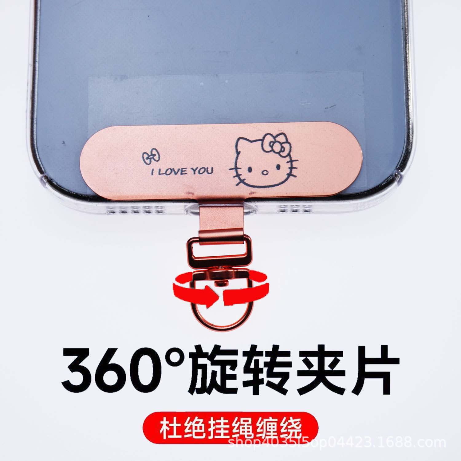 卡通可爱手机挂绳金属夹片轻薄不锈钢3D旋转连接片结实不顶壳垫片