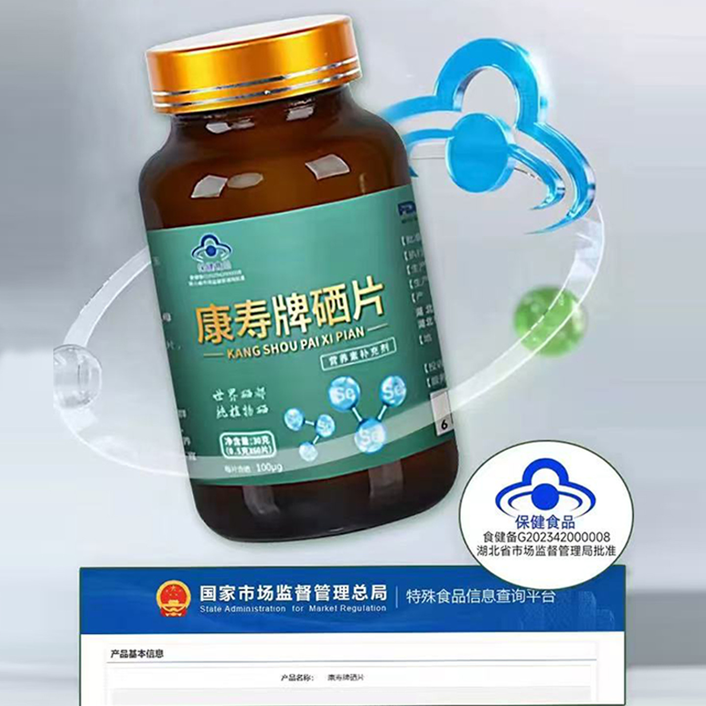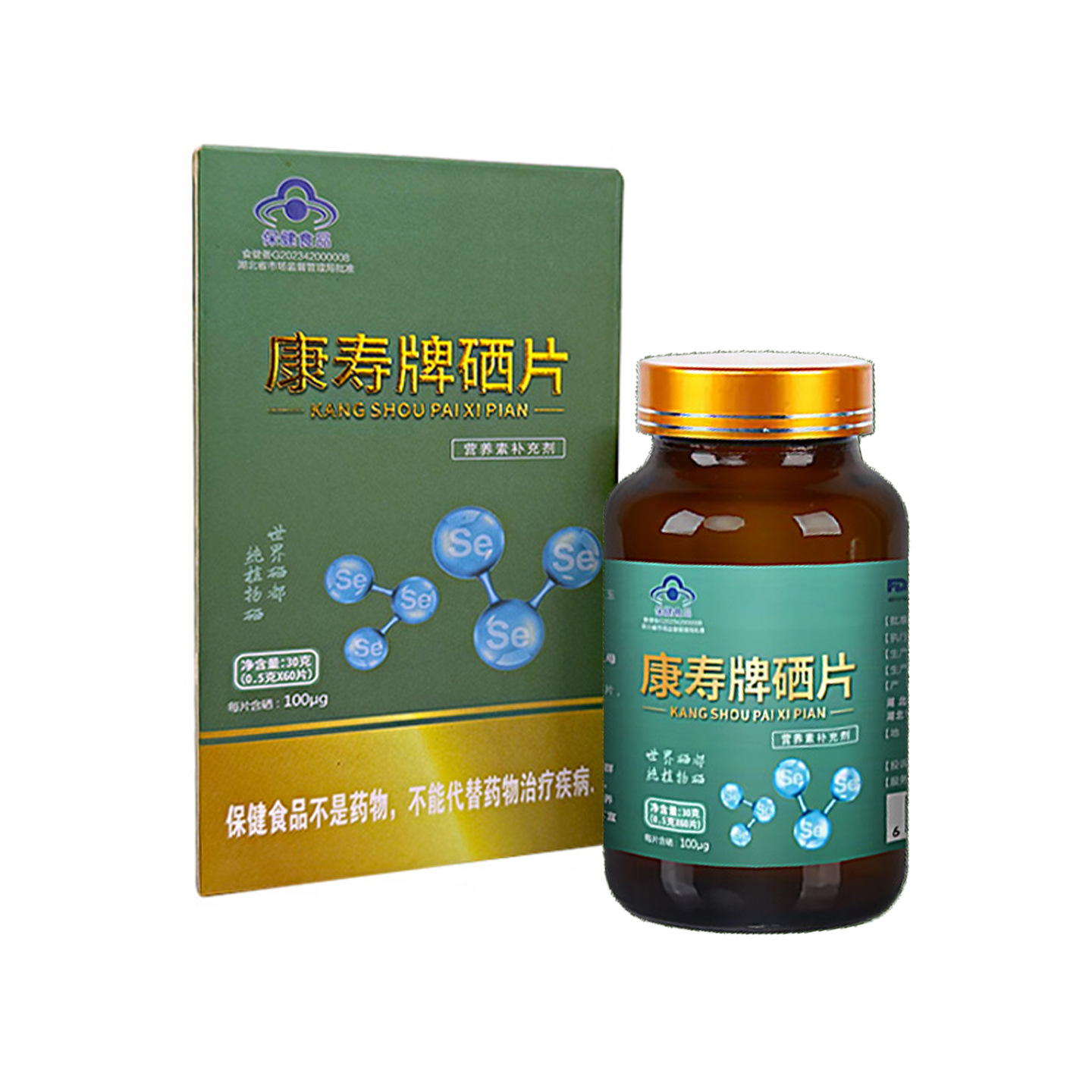 康寿牌硒片\湖北恩施\硒蛋白\非酵母硒\每片含量100微克60片一瓶