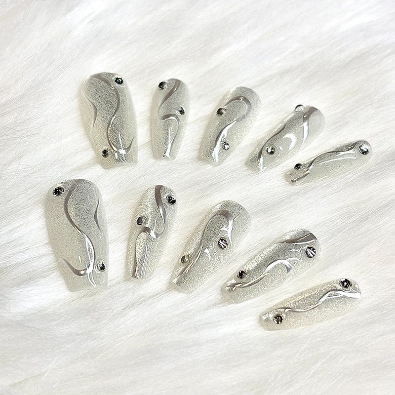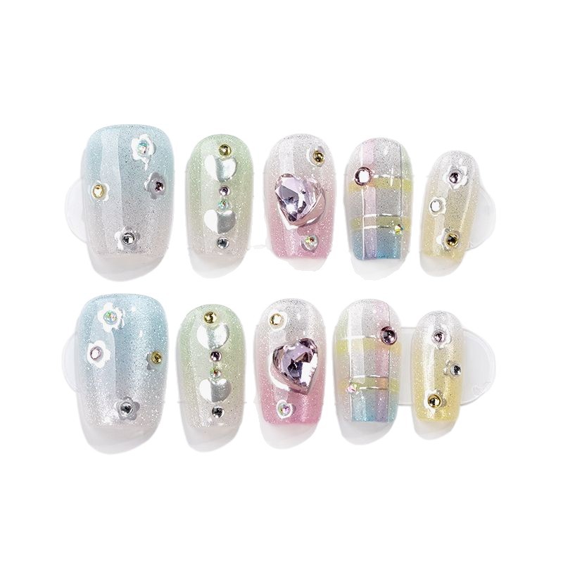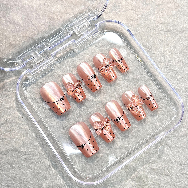 爆款穿戴式美甲甲片细闪淡雅手工穿戴甲纯手作成品工厂批发不伤甲