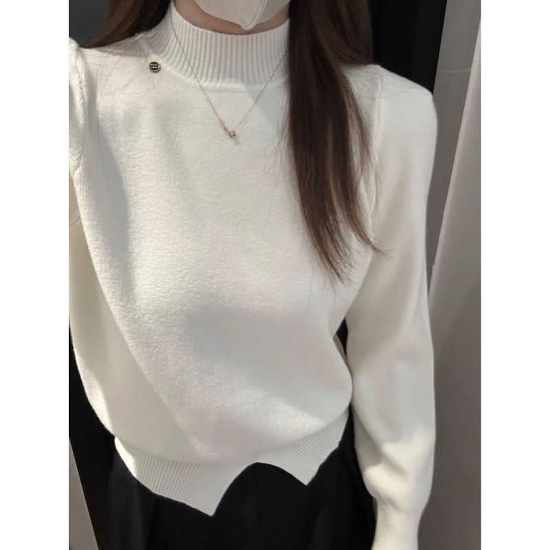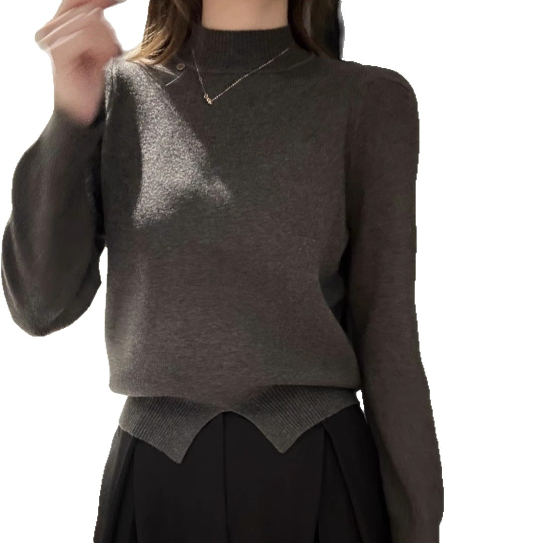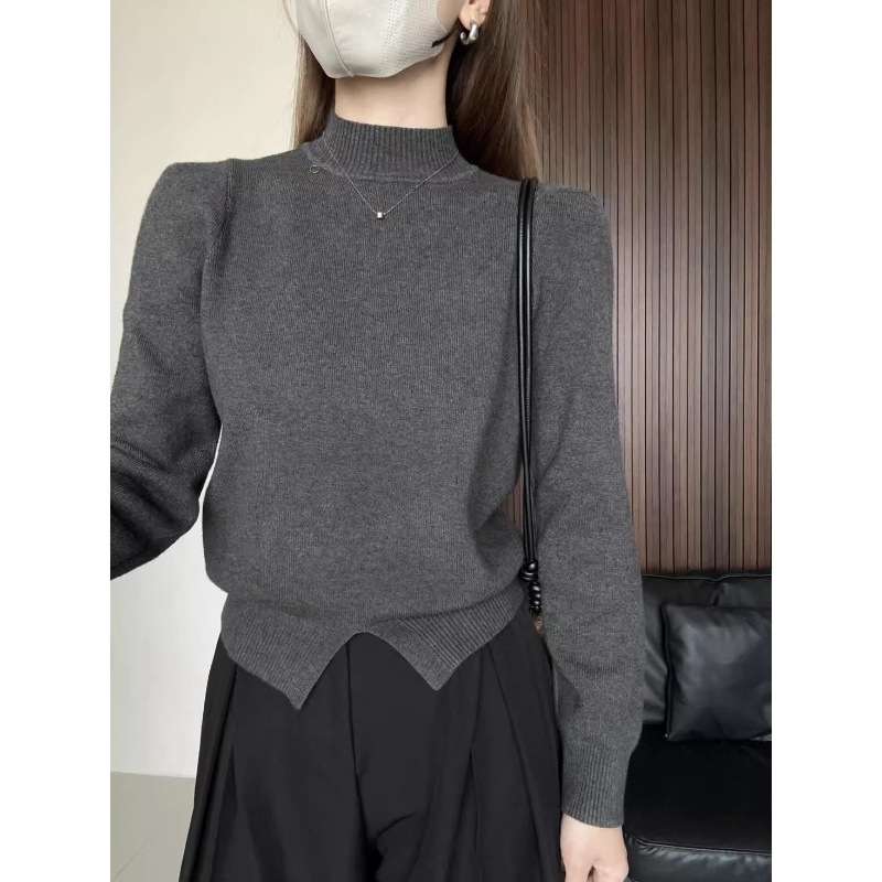 深灰色半高领毛衣女秋冬内搭可外穿针织打底衫入秋穿搭高级感上衣