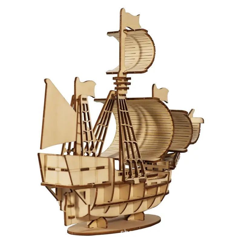 创意木制帆船拼装立体模型手工礼物家庭亲子益智玩具新年