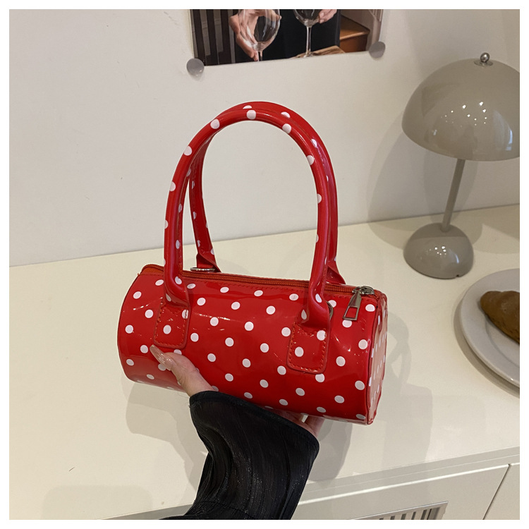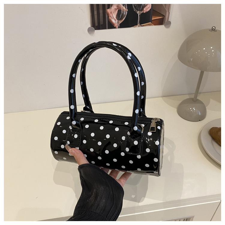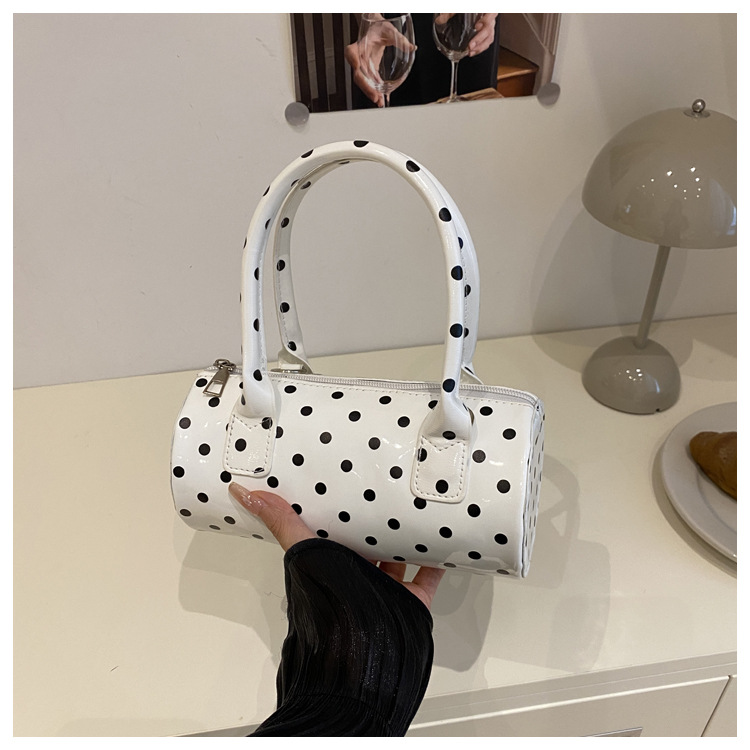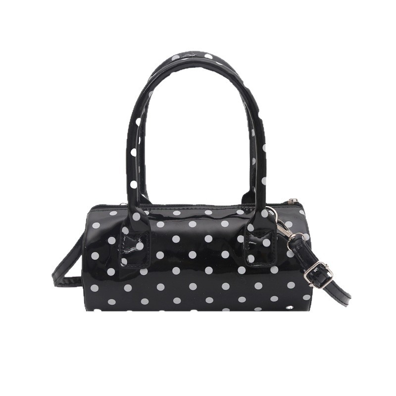 跨境波点简约女式2025新款夏天流行大容量潮流手提圆筒枕头斜挎包