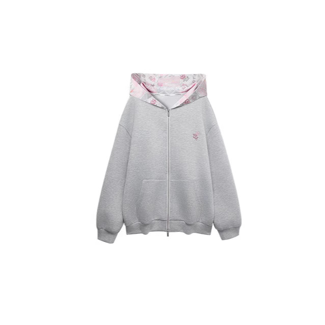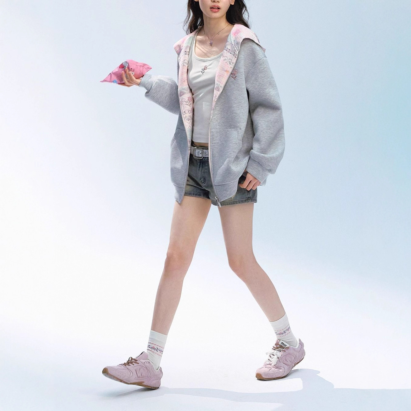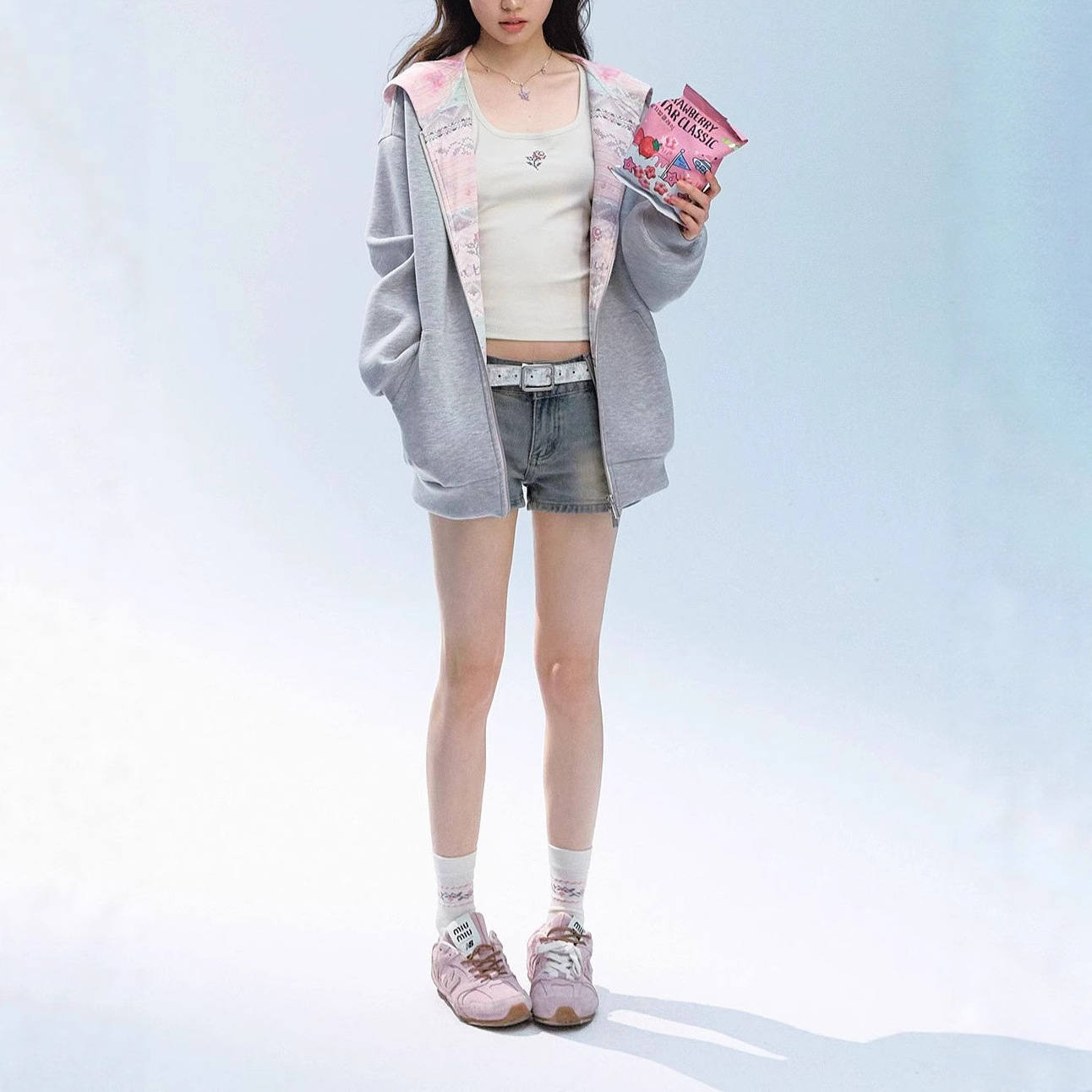田曦薇同款品宣灰色连帽卫衣外套女宽松甜美休闲夹克