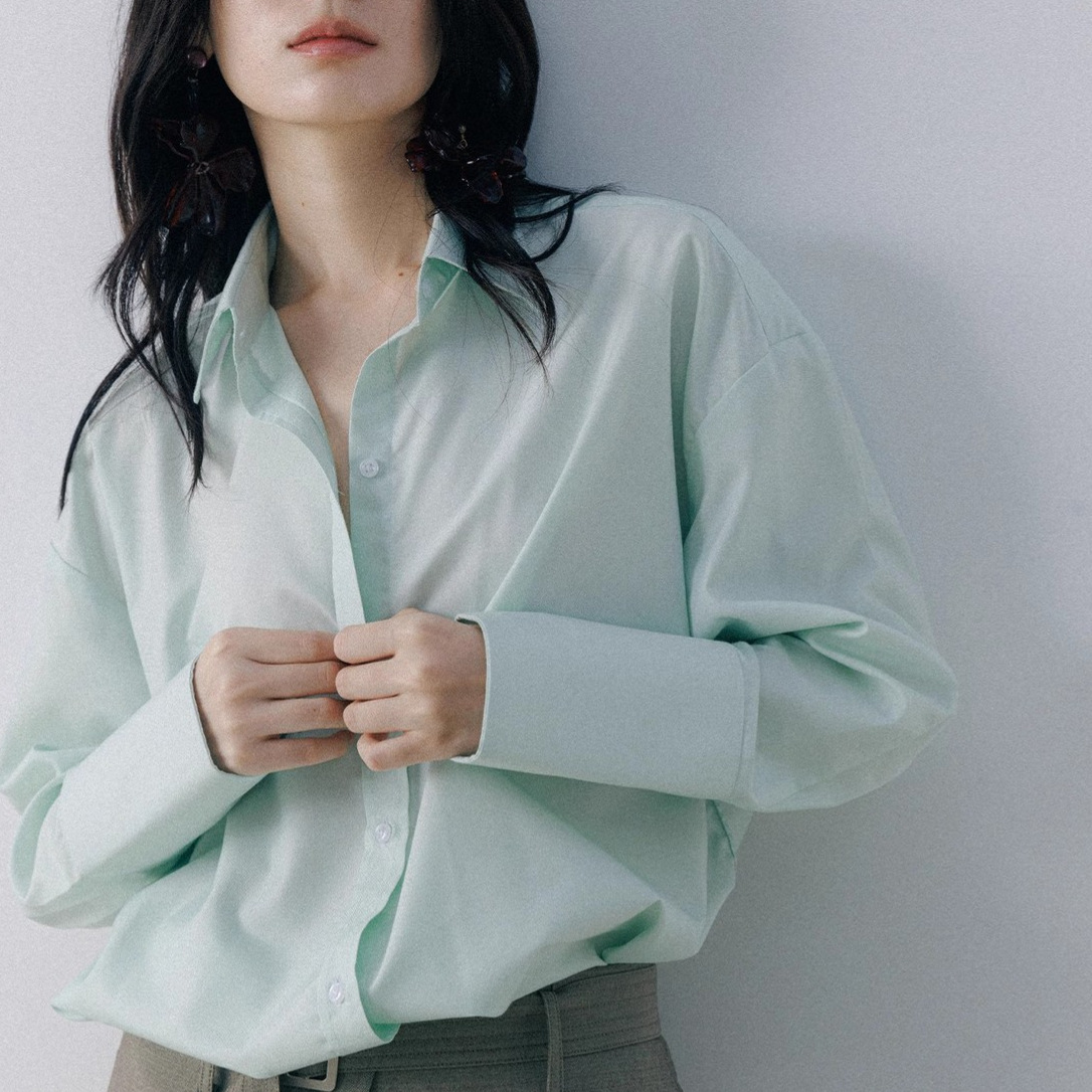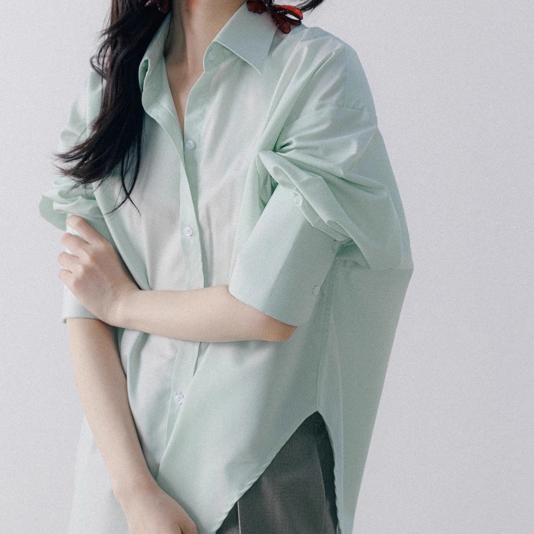 24SS薄荷曼波 时髦极简清冷感抗皱宽松廓形长袖衬衫女