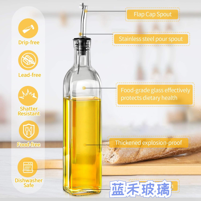 亚马逊玻璃油瓶500ml透明橄榄油壶代发家用厨房料酒酱油醋瓶批发