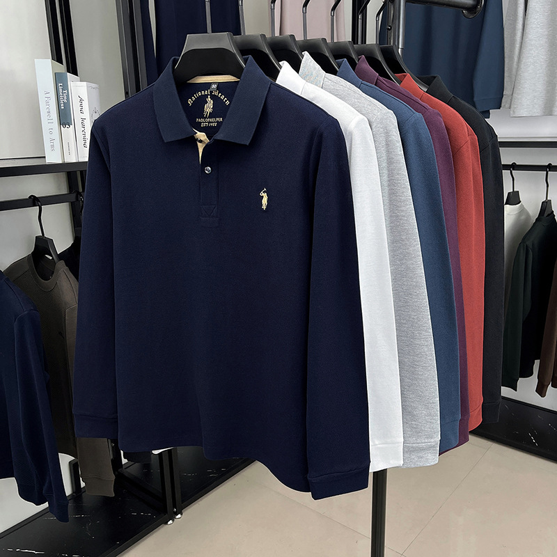 纯棉男士长袖polo衫新款春秋季男装翻领t恤上衣商务休闲外套男潮
