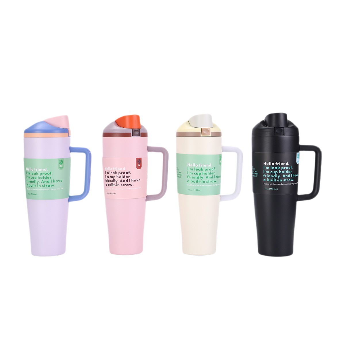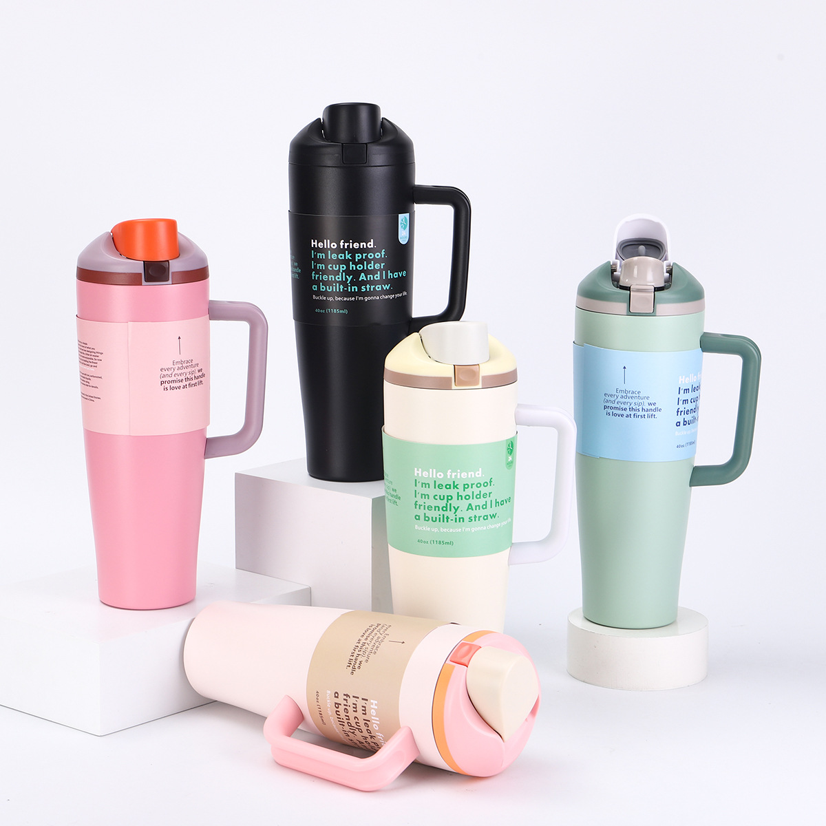 跨境新款40oz手柄杯多巴胺双饮运动水杯便携大容量水果杯