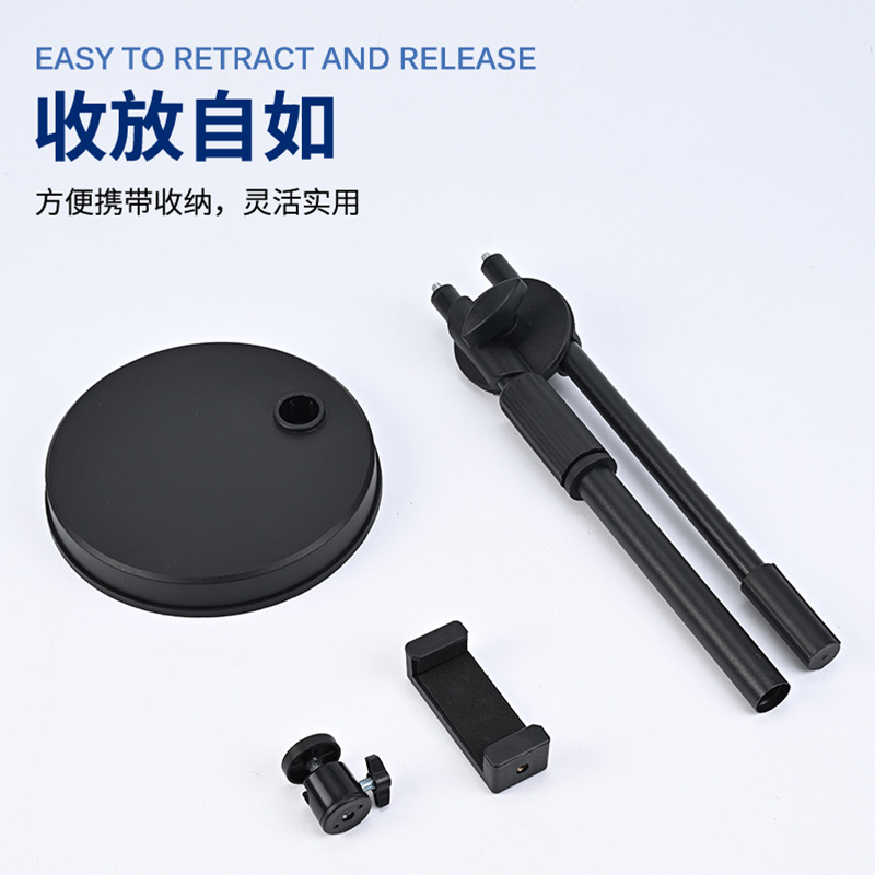 圆盘升降桌面支架家用直播手机摄像头支架可自由升降俯拍黑色支架