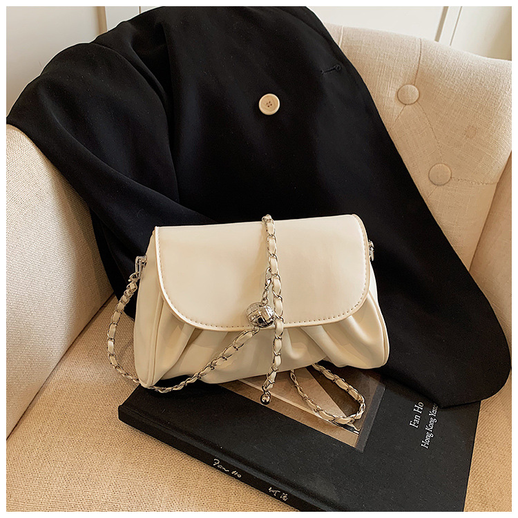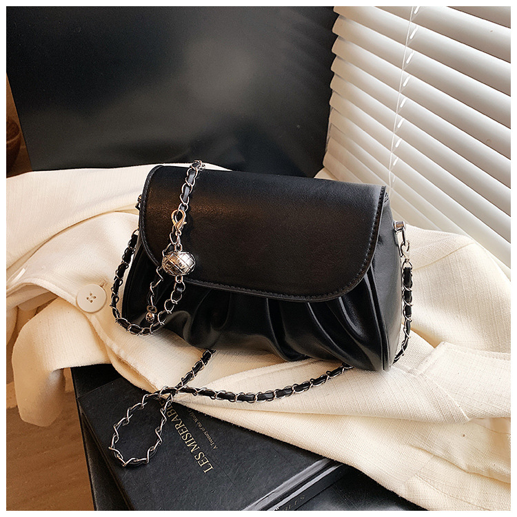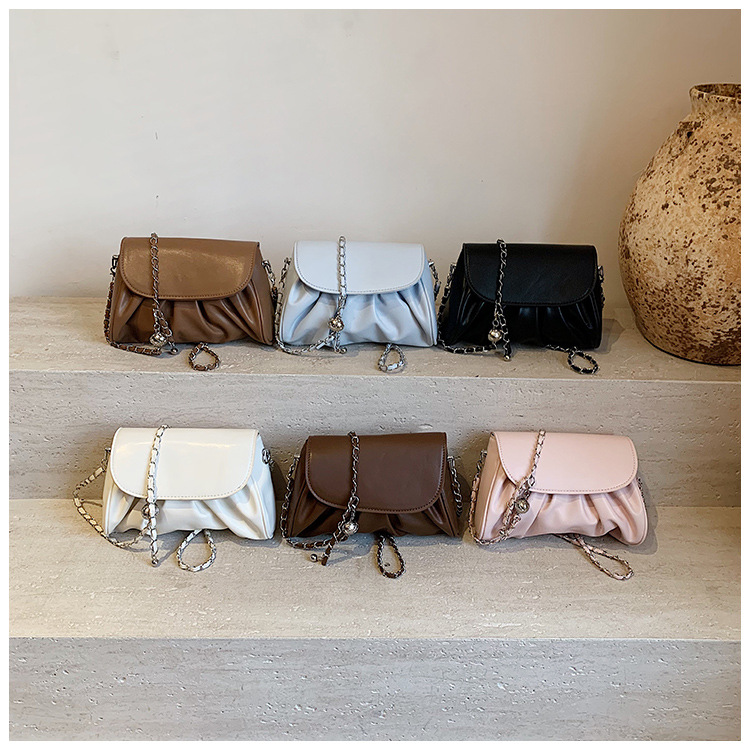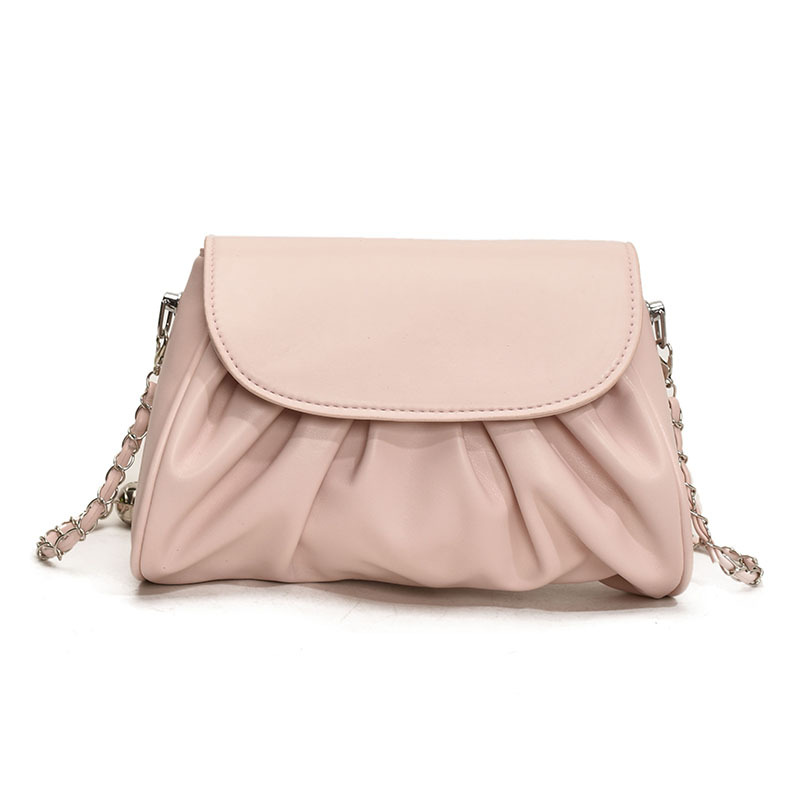 时尚女生包包女2025秋新款纯色褶皱手提包可爱简约链条单肩斜跨包