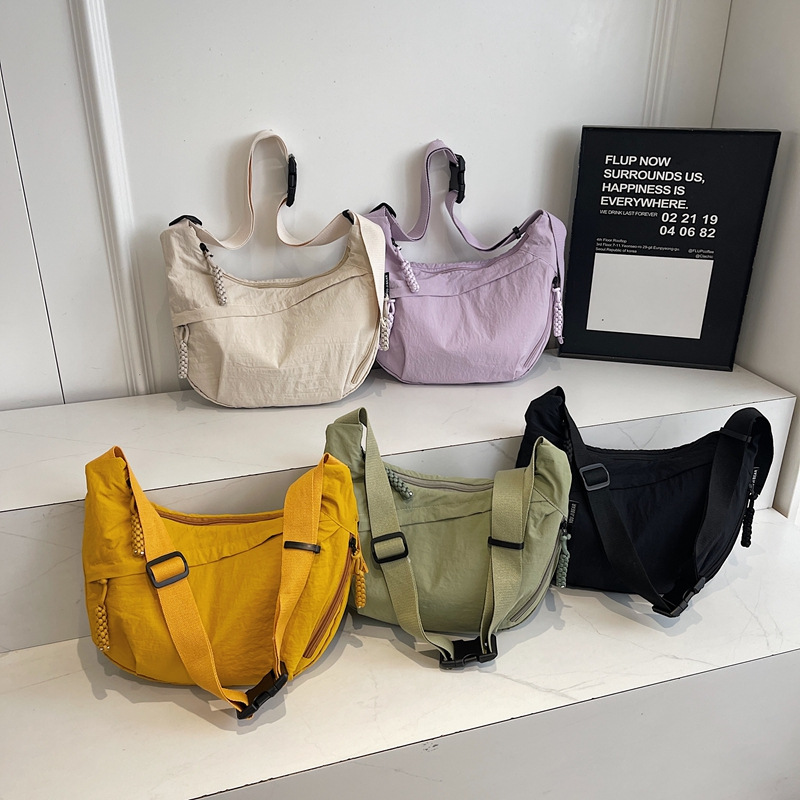 清新简约百搭纯色饺子包轻便通勤休闲斜挎包透气耐磨大容量托特包