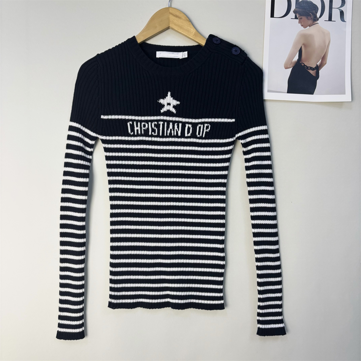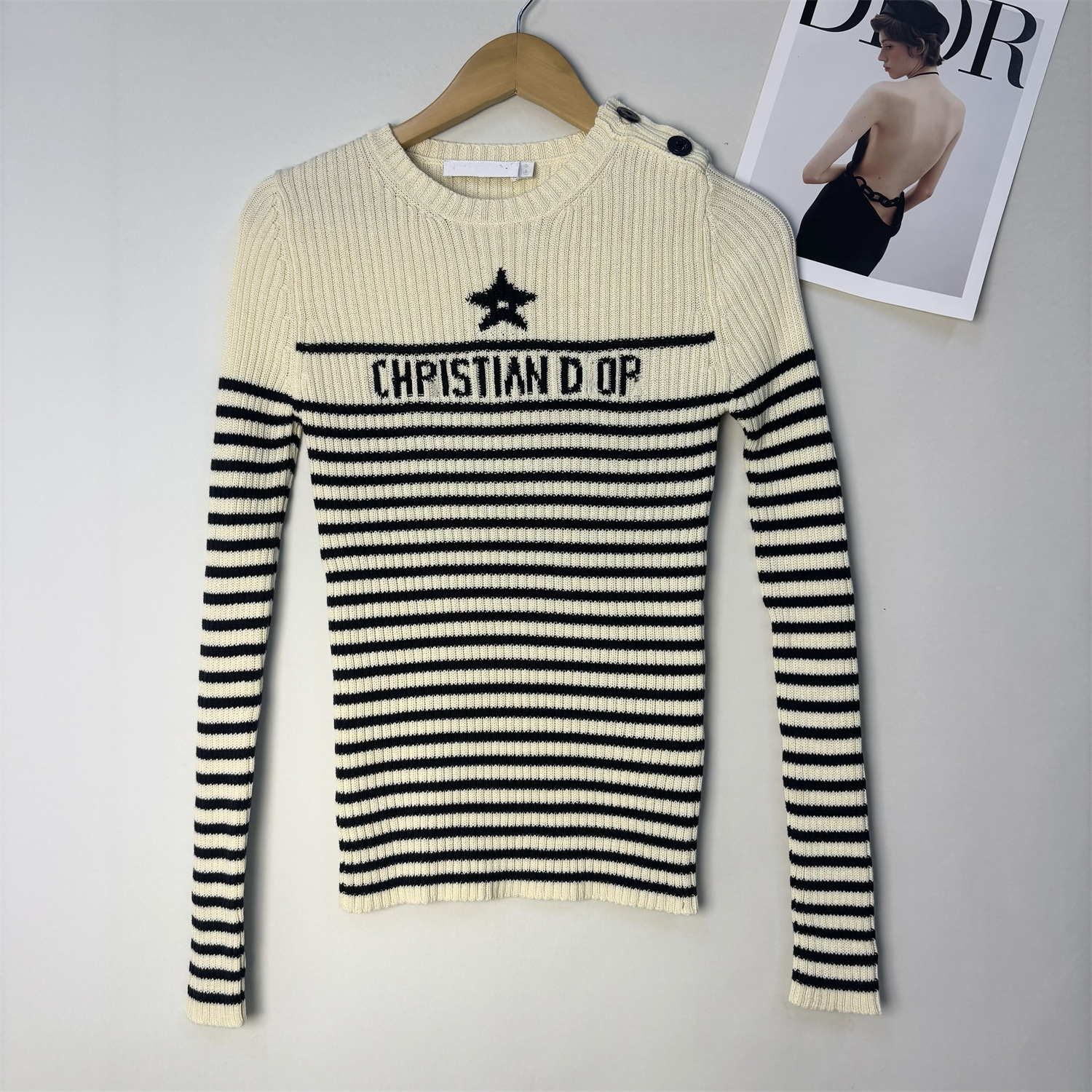 一件代发南油品质D家秋冬海军风五角星刺绣字母条纹针织衫毛衣女
