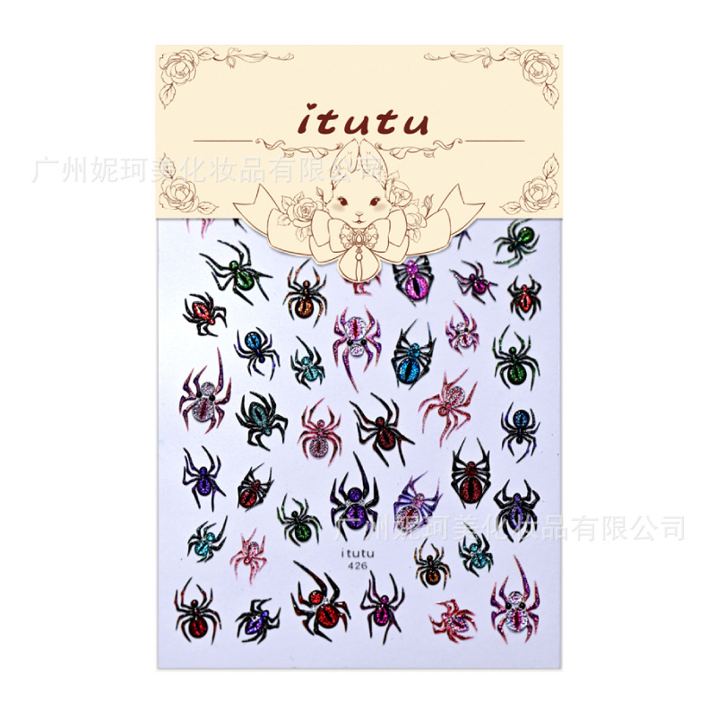 itutu暗黑系蜘蛛美甲贴纸新款流光蛛丝红色蝴蝶爱心蜘蛛网指甲背