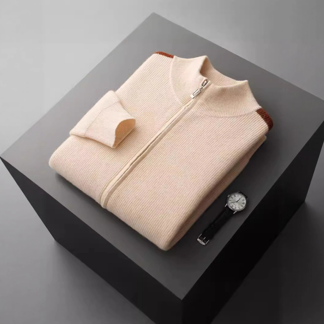 欧洲站2024秋冬新款男羊毛开衫半高领撞色加厚毛衣针织衫潮款男装