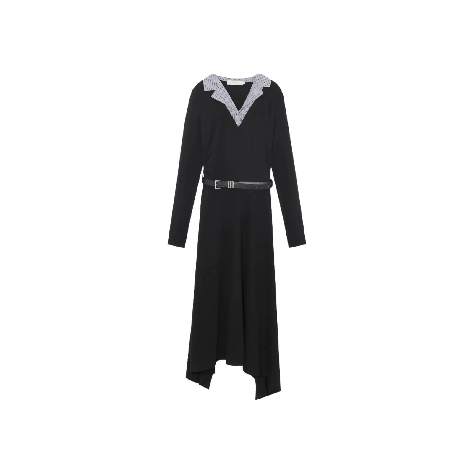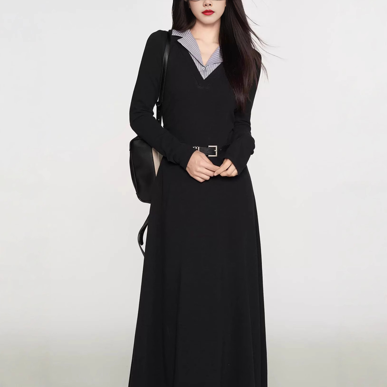 韩版翻领拼接假两件连衣裙女秋季高级感收腰显瘦长裙子