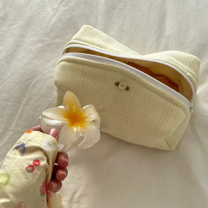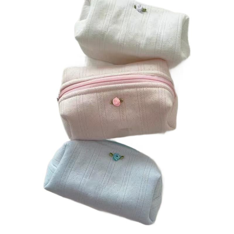 特点绗棉化妆包、刺绣花朵装饰洗漱包
