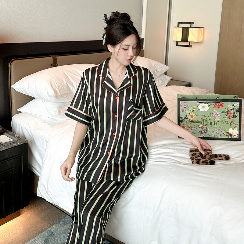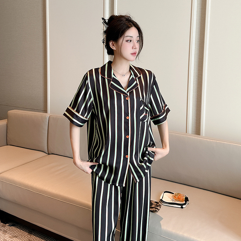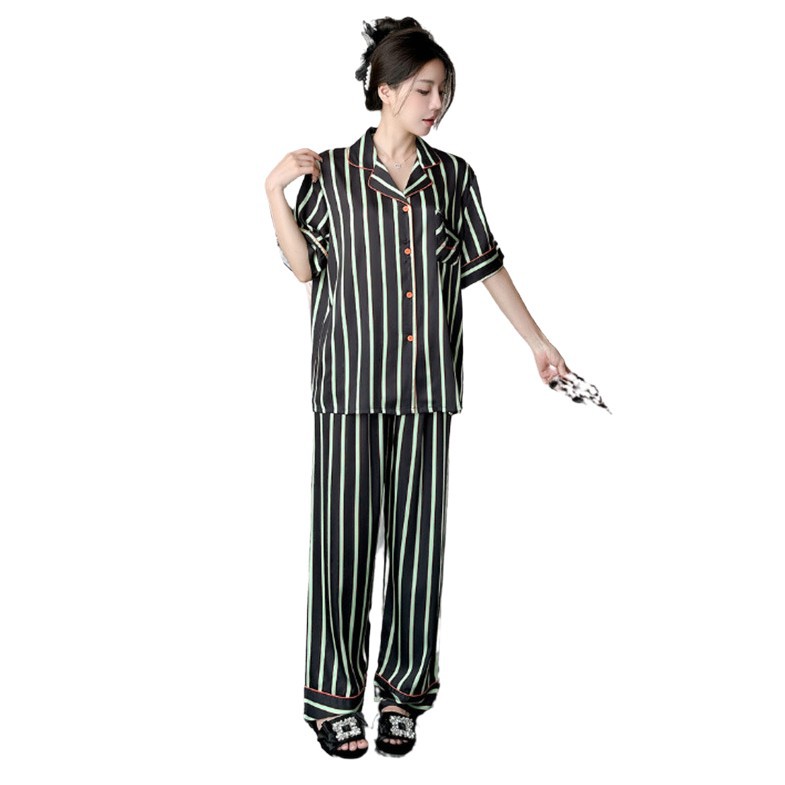 网红爆款气质时尚条纹可外穿家居服条纹睡衣女春夏两件套3D数码印