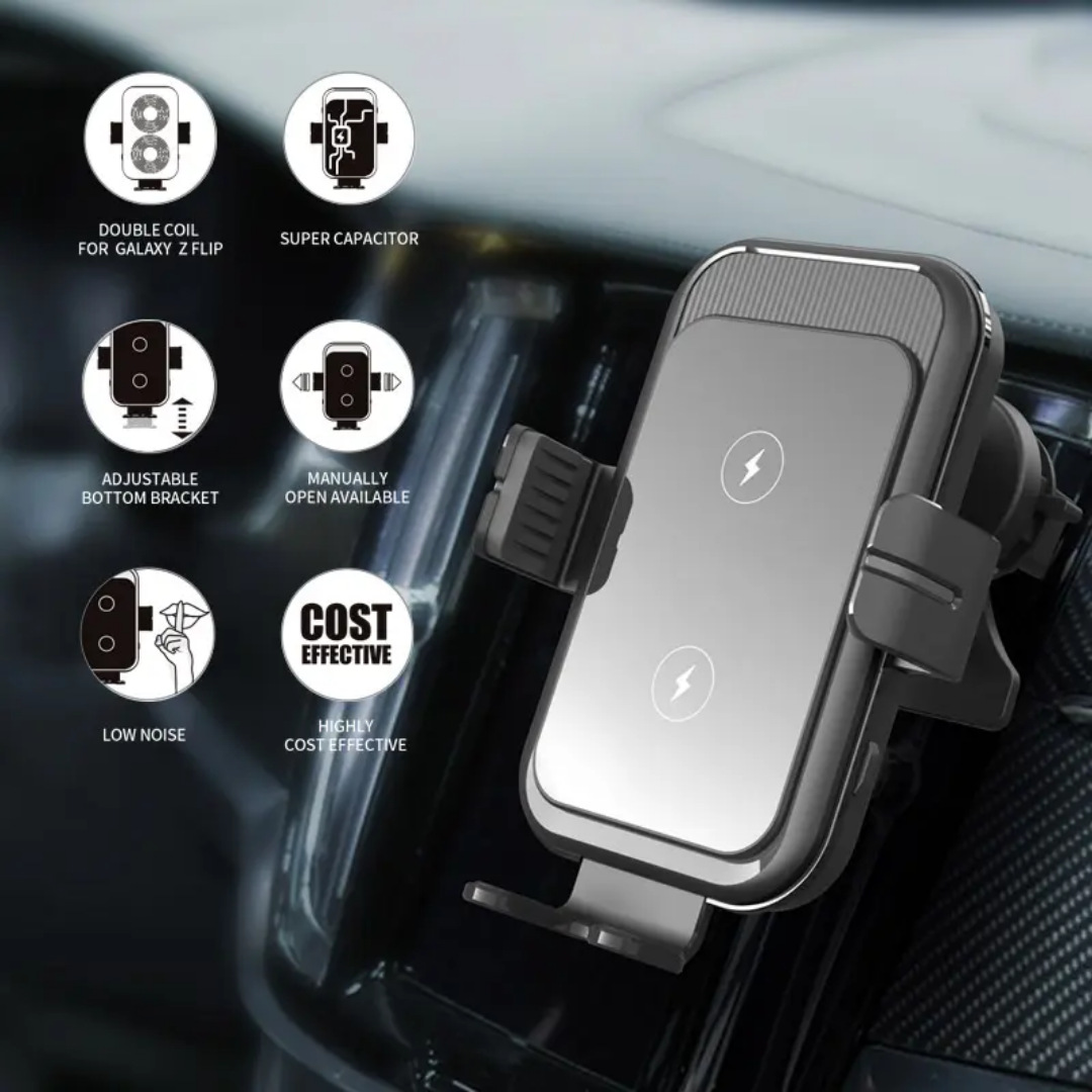 热销产品2025可调汽车自动夹紧智能手机支架双线圈无线汽车充电器