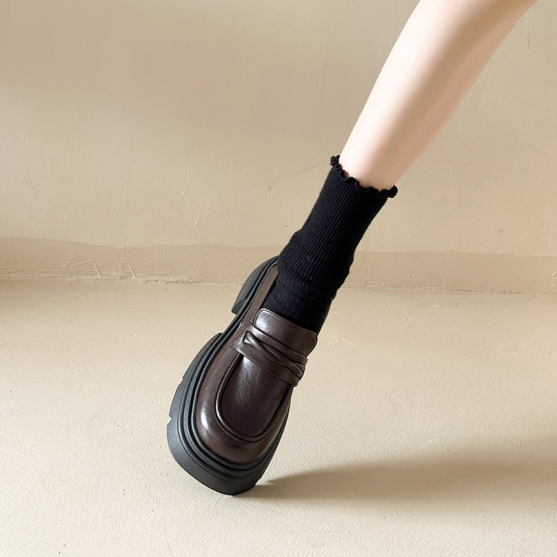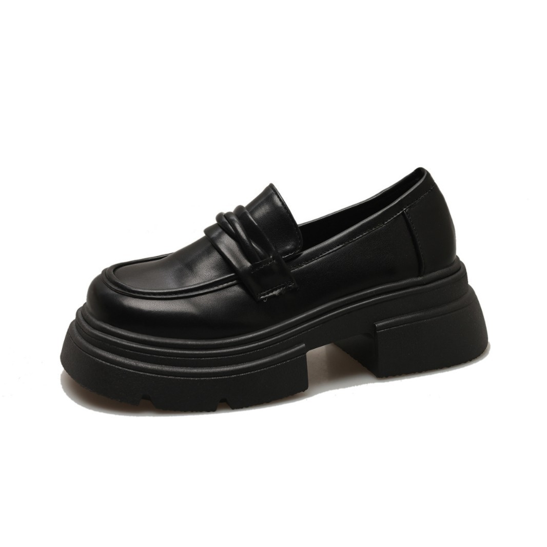 厚底乐福鞋女2025新款黑色小皮鞋一脚蹬女鞋英伦风百搭小皮鞋jk