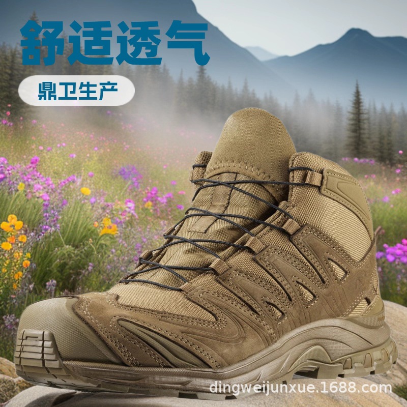 透气中帮登山鞋工厂加厚牛皮沙漠靴耐磨防滑鞋户外生产透气作战靴