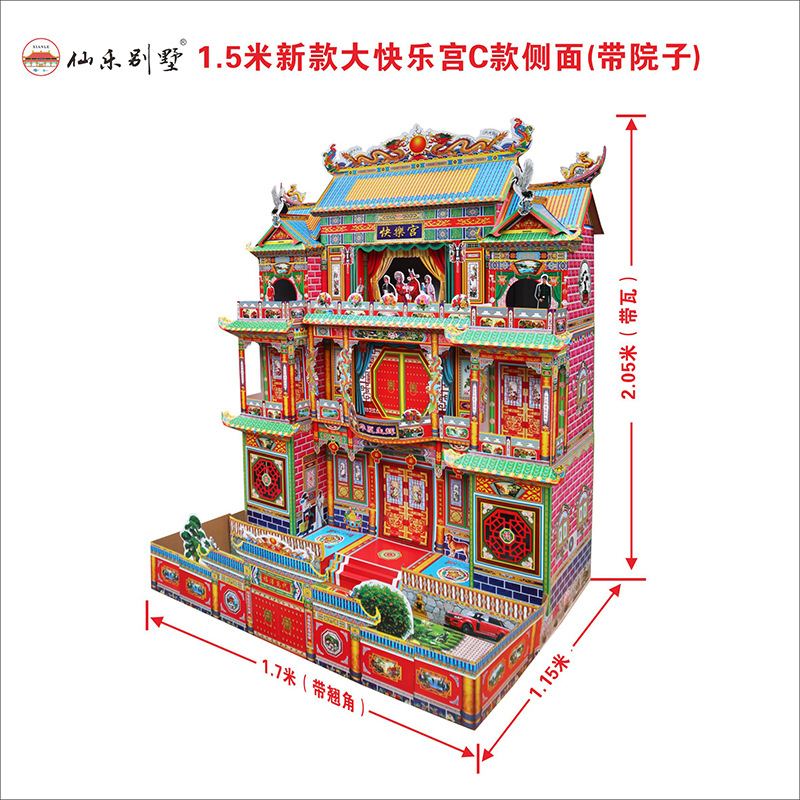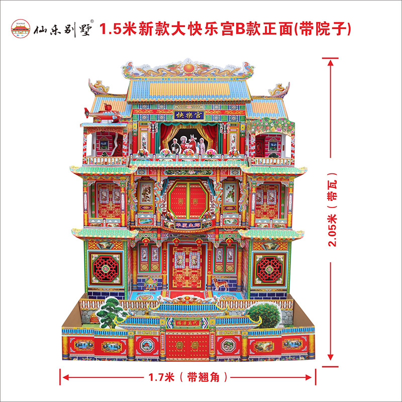 别墅纸房子祭祀烧纸灵屋纸活纸扎快乐宫带标准院子丧葬白事用品