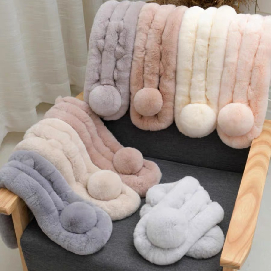 跨境爆款厂家直供皮草围脖围巾真獭兔毛女士挂脖毛绒脖套三管