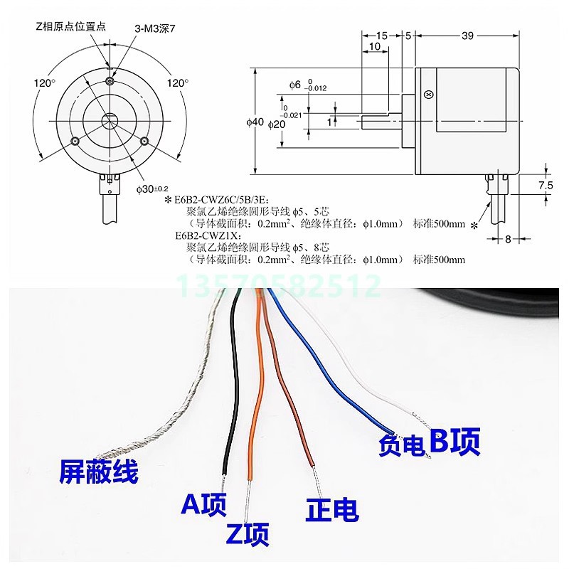 全新现货欧姆龙型E6B2-CWZ5B 1024P/R编码器 外径40mm实心轴6mm