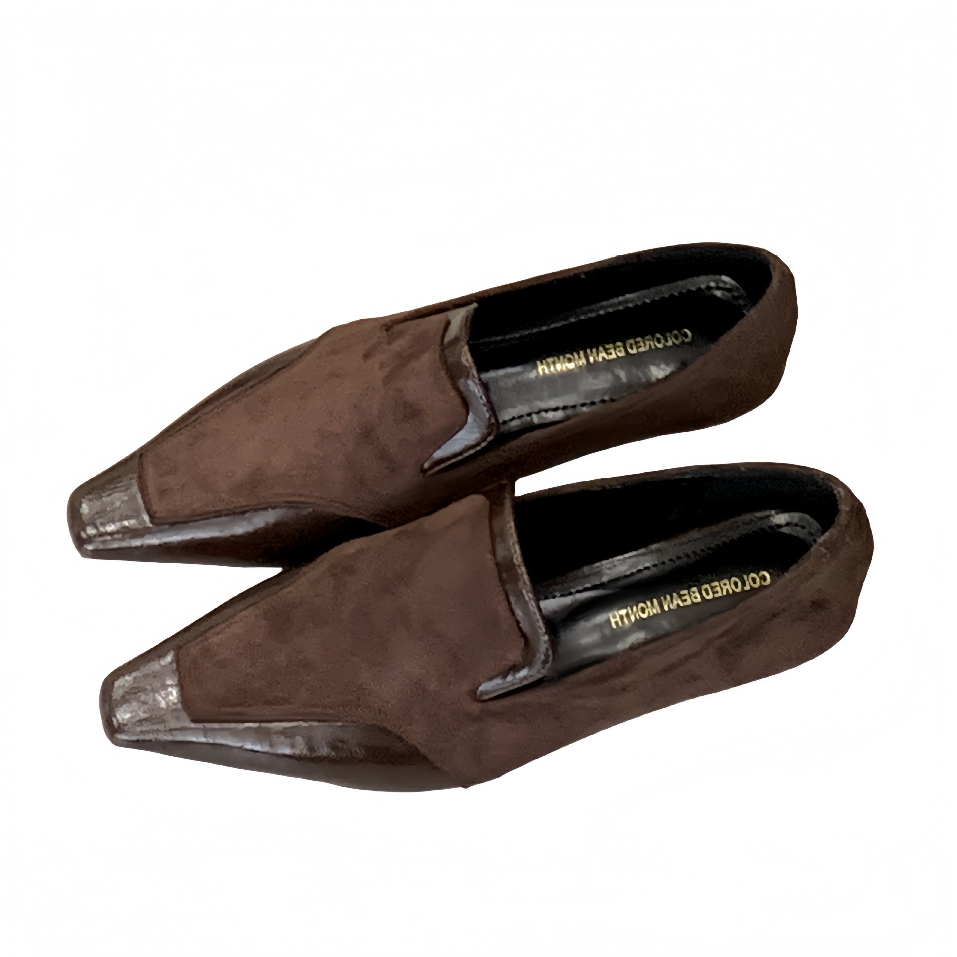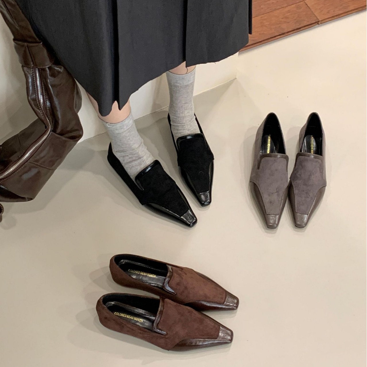 法式小众深口鞋2025秋冬小方头坡跟绒面拼接款英伦风时尚成熟女鞋