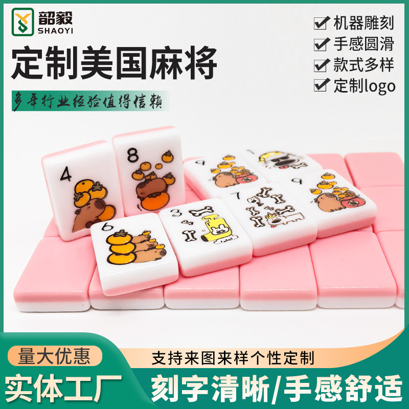 美国麻将密胺亚克力美国麻将定 制单层多层精雕UV彩色图案麻将
