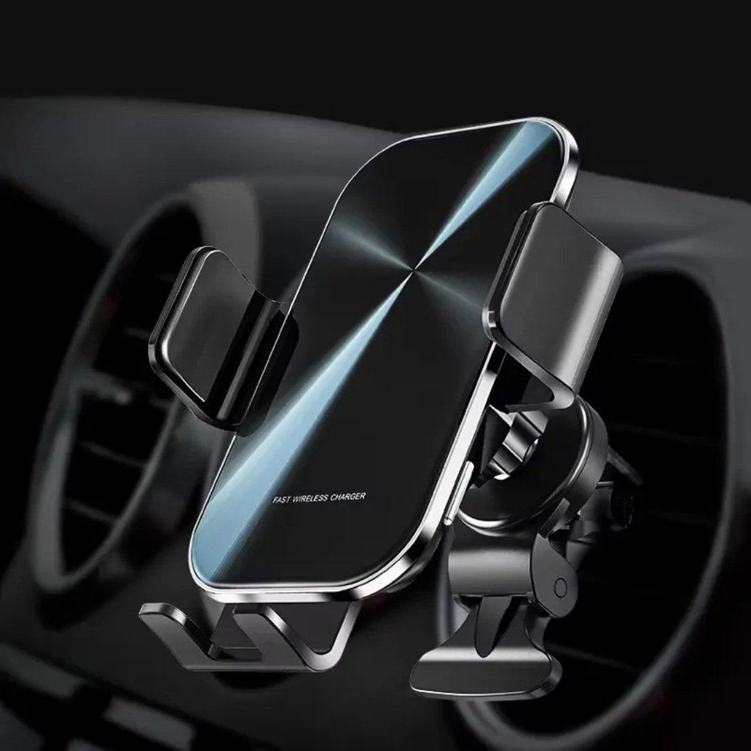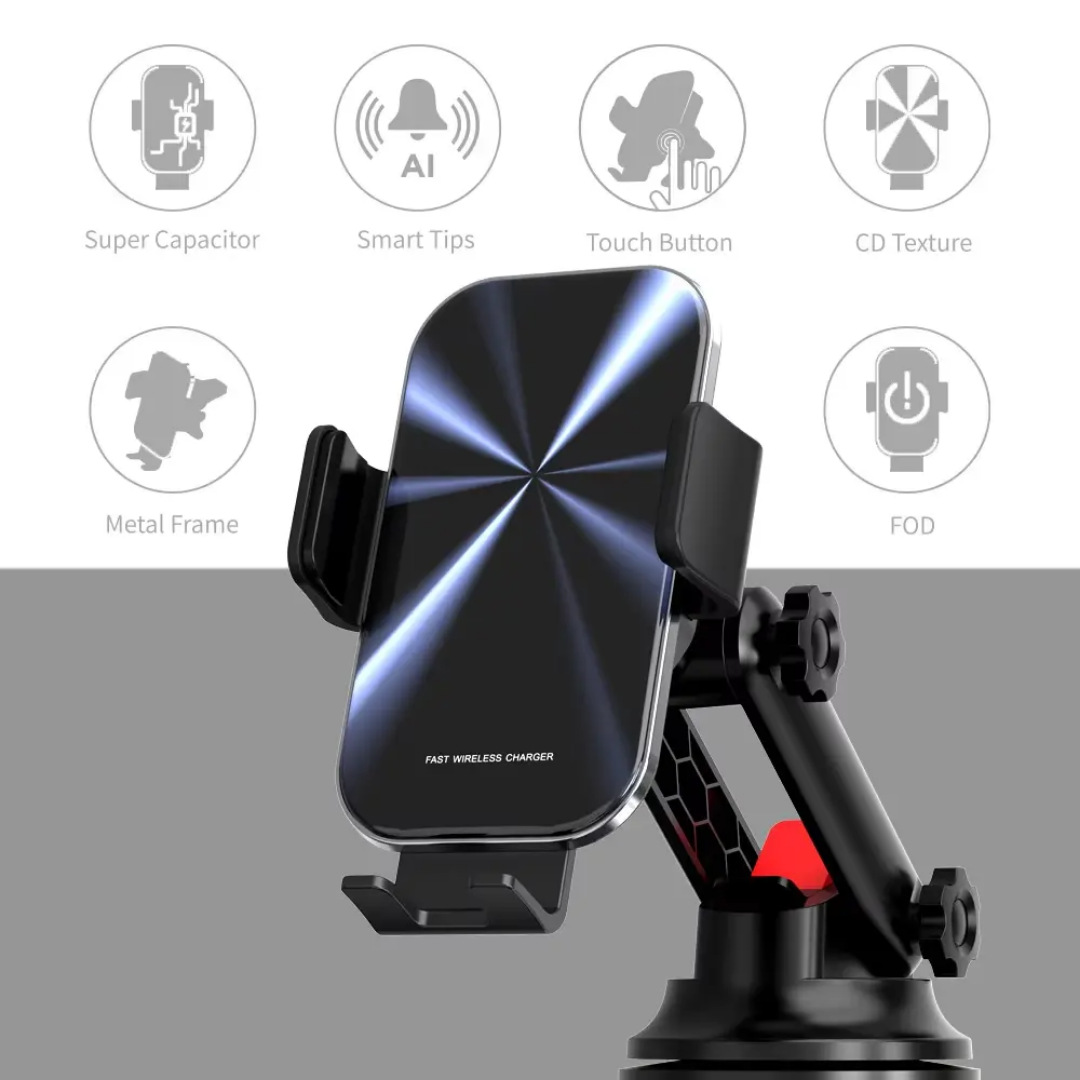 新款无线车载支架感应360旋转快速充电开关15W车载手机无线充电器