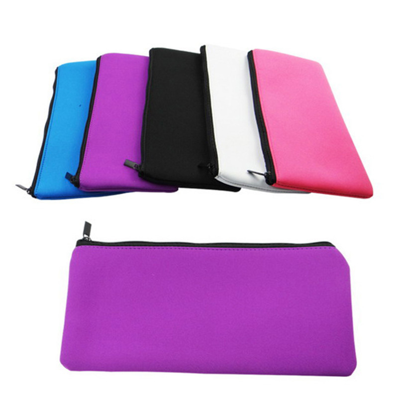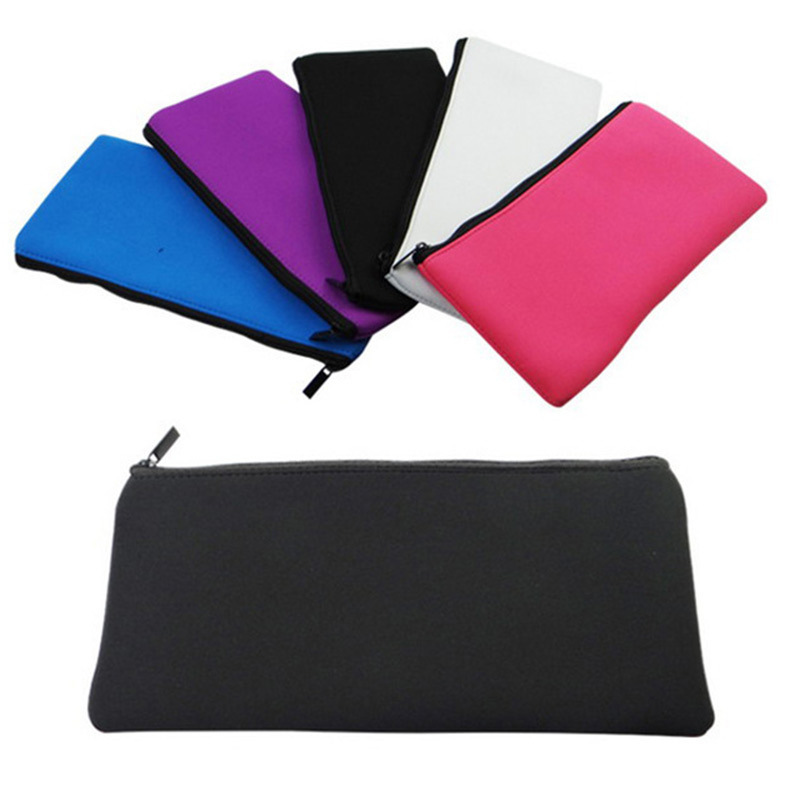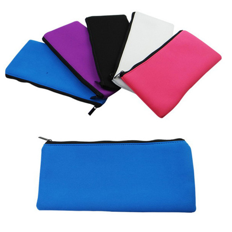 创意文具收纳袋纯色学生大容量铅笔袋蓝色潜水料材质蓝色文具袋