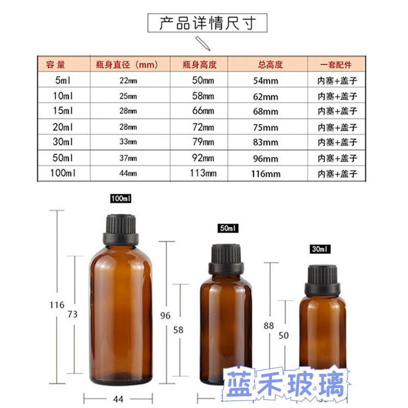 | 规格 | 20ML茶色+滴头+大头盖 | 规格 | 30ML茶色+滴头+大头盖 |