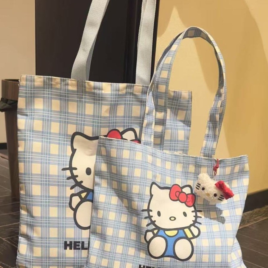 新款蓝色kitty手提袋上班族通勤大容量收纳袋学生补课轻便收纳包