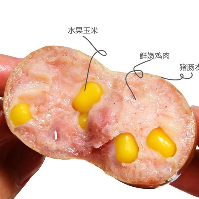 儿童零食膳食鸡肉热狗肠果木熏烤烧烤食材火腿香肠玉米味脆皮烤肠