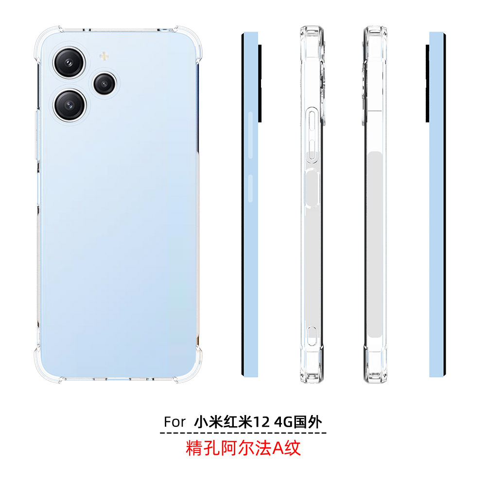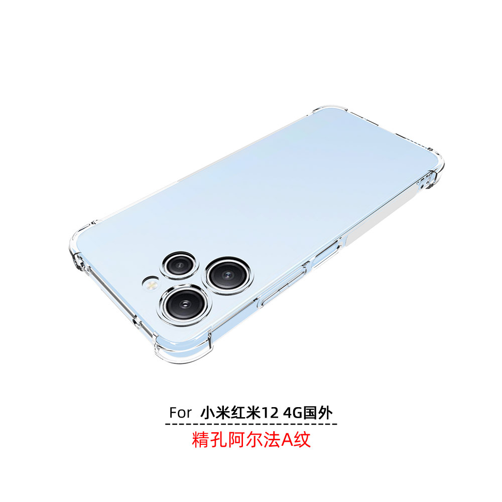 适用红米12 4G国外手机保护套三防四角防摔气囊壳适用透明素材Tpu