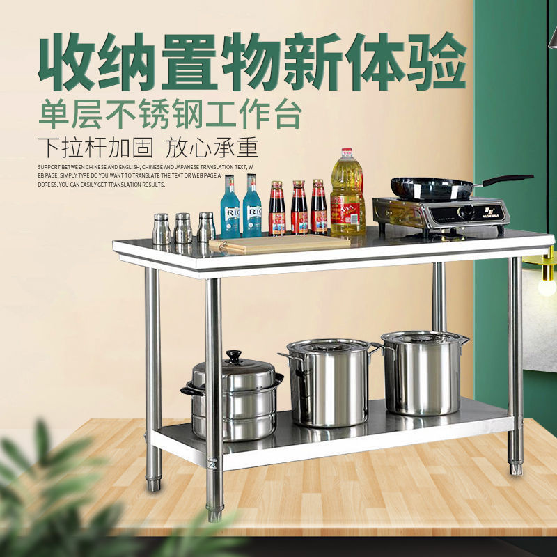 双层层不锈钢工作台厨房操作台两层加厚打荷台饭店切菜桌打包装台