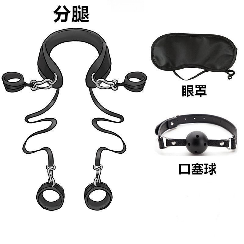 | 规格 | 分腿带+遮光眼罩+口塞球 | 规格 | 分腿带+遮光眼罩+口塞球+乳夹 |