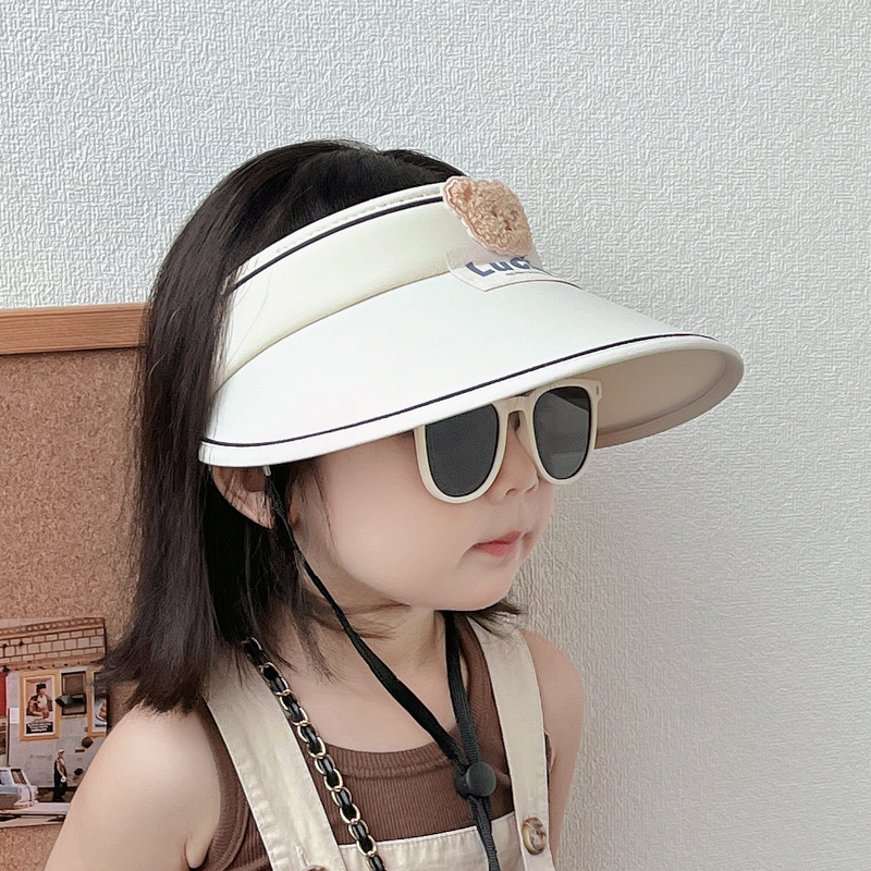 2025春季大檐遮阳毛绒女童空顶防晒帽清新甜美太阳帽宝宝夏季凉帽