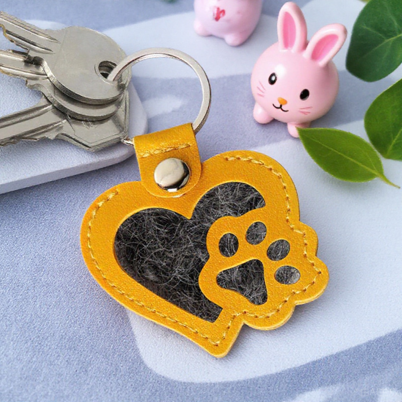 现货宠物毛发收纳爱心猫爪钥匙扣 pu皮革宠物猫狗遗毛收藏袋