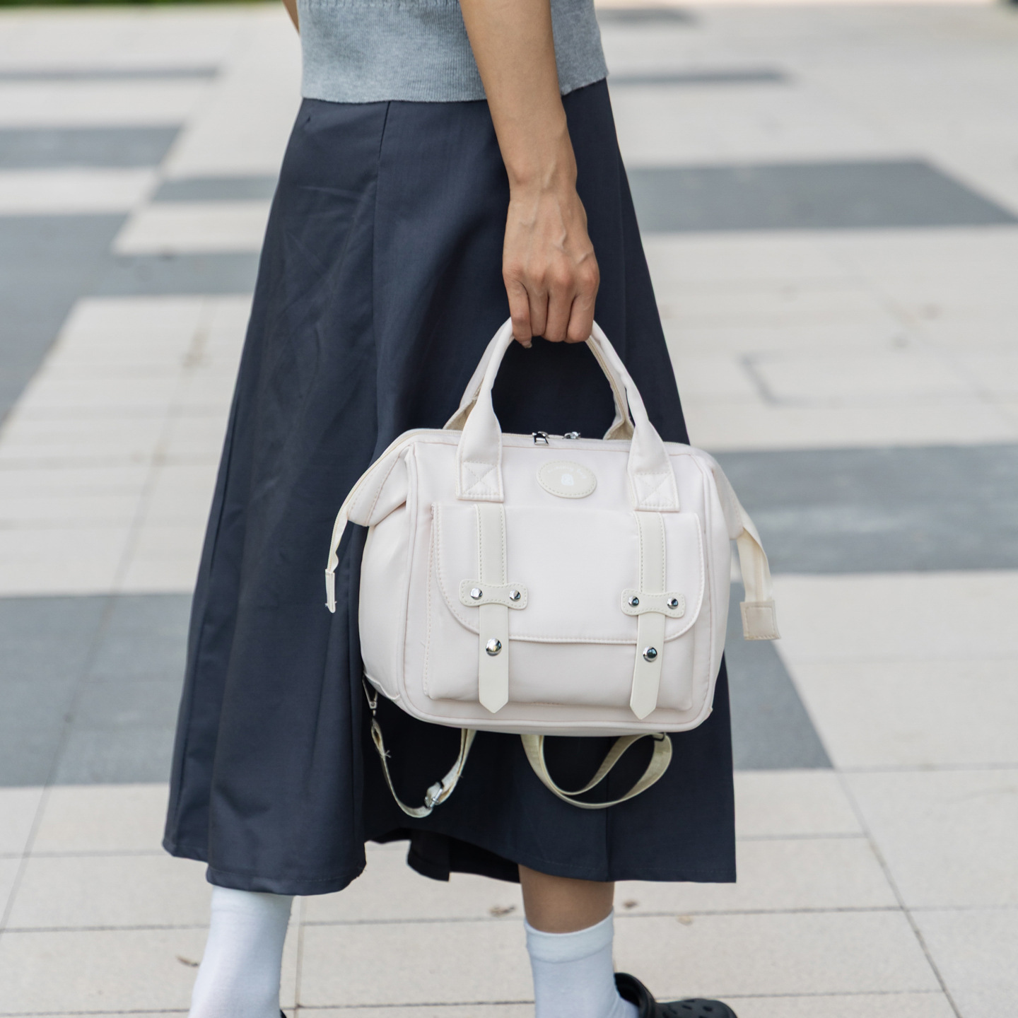 简约轻便大容量妈咪包 防水百搭休闲双肩包 通勤耐磨多隔层手提包