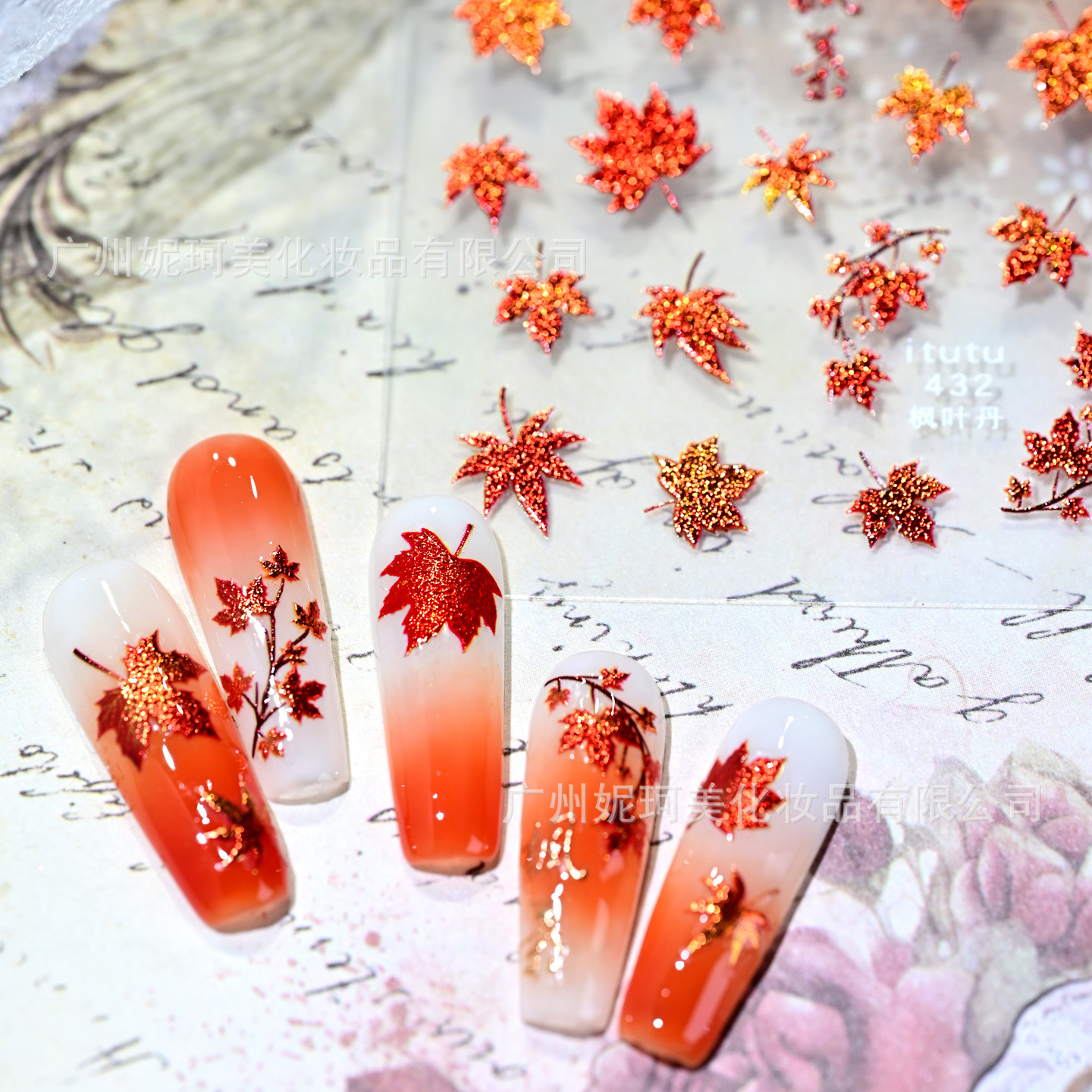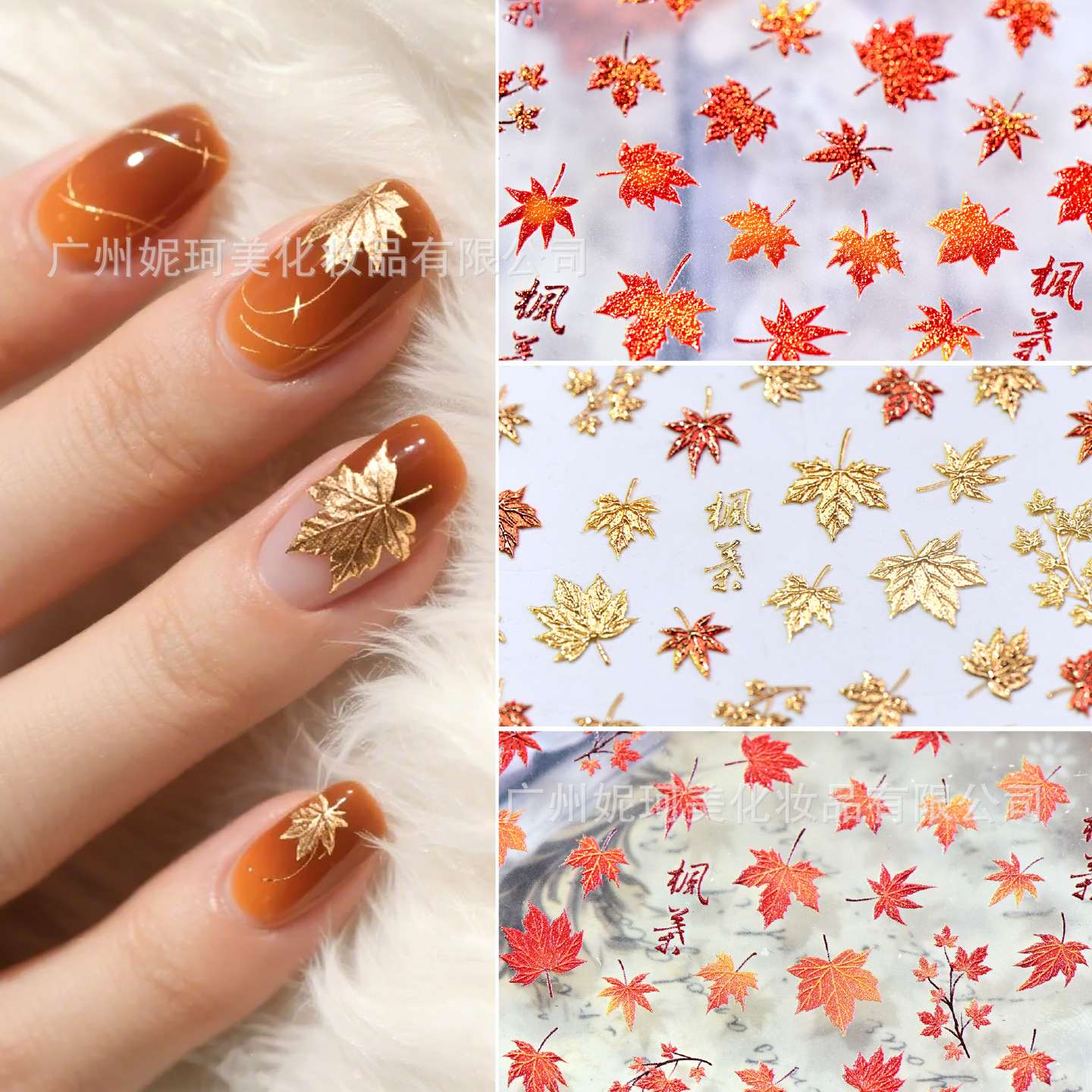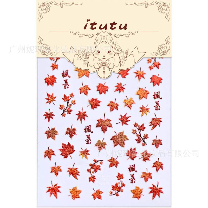 跨境新款枫叶美甲贴纸ins秋季枫叶立体浮雕背胶指甲贴饰品装饰