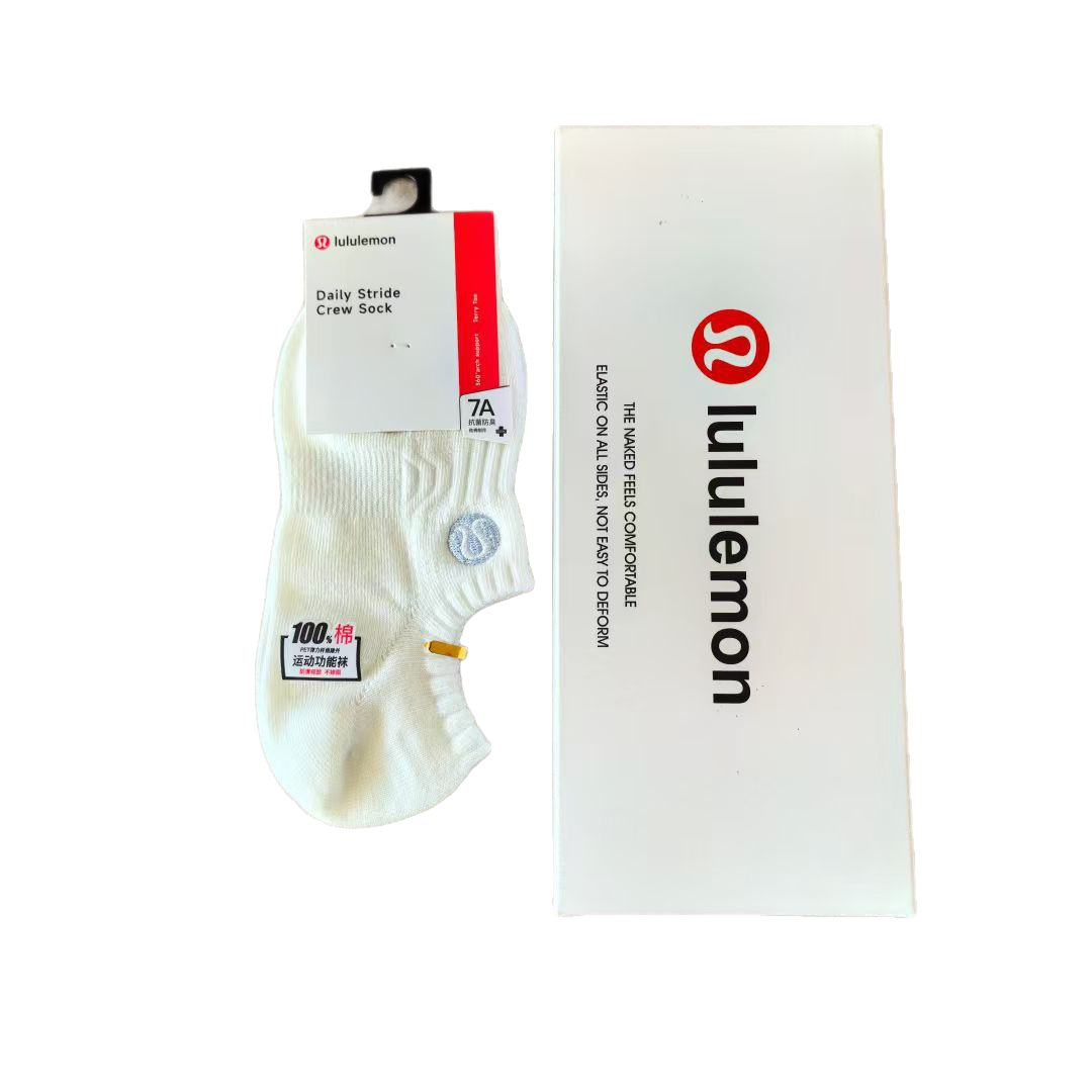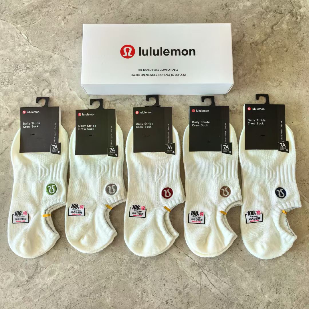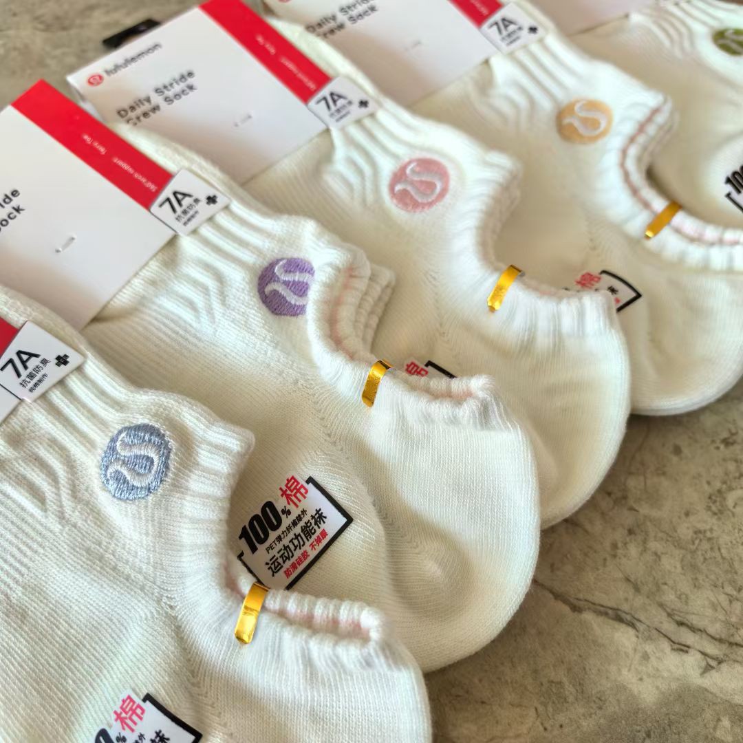 五双装刺绣lulu男女袜春夏季休闲纯色袜秋季薄款刺绣船袜袜拖