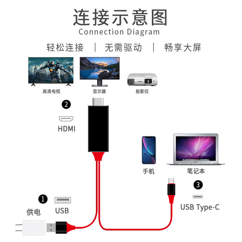 USB3.1 Type-C转hdmi USB高清同屏线 Type-C手机同屏线HDMI电视线