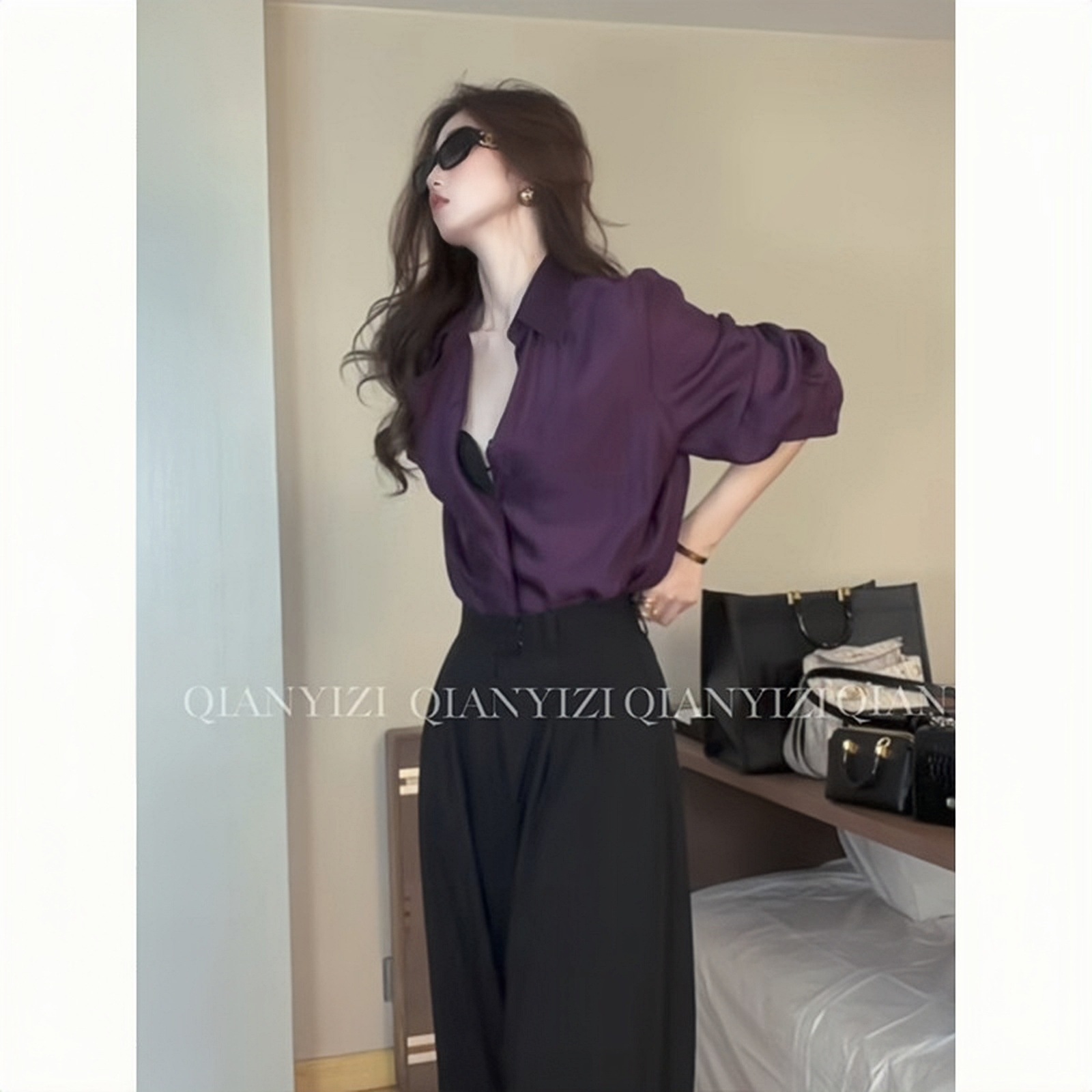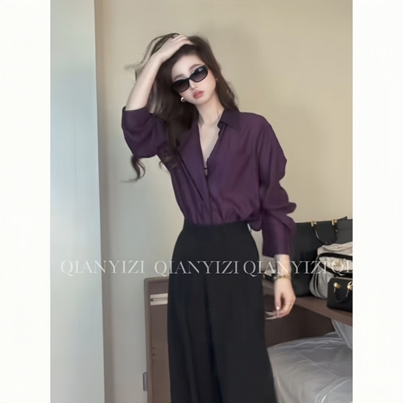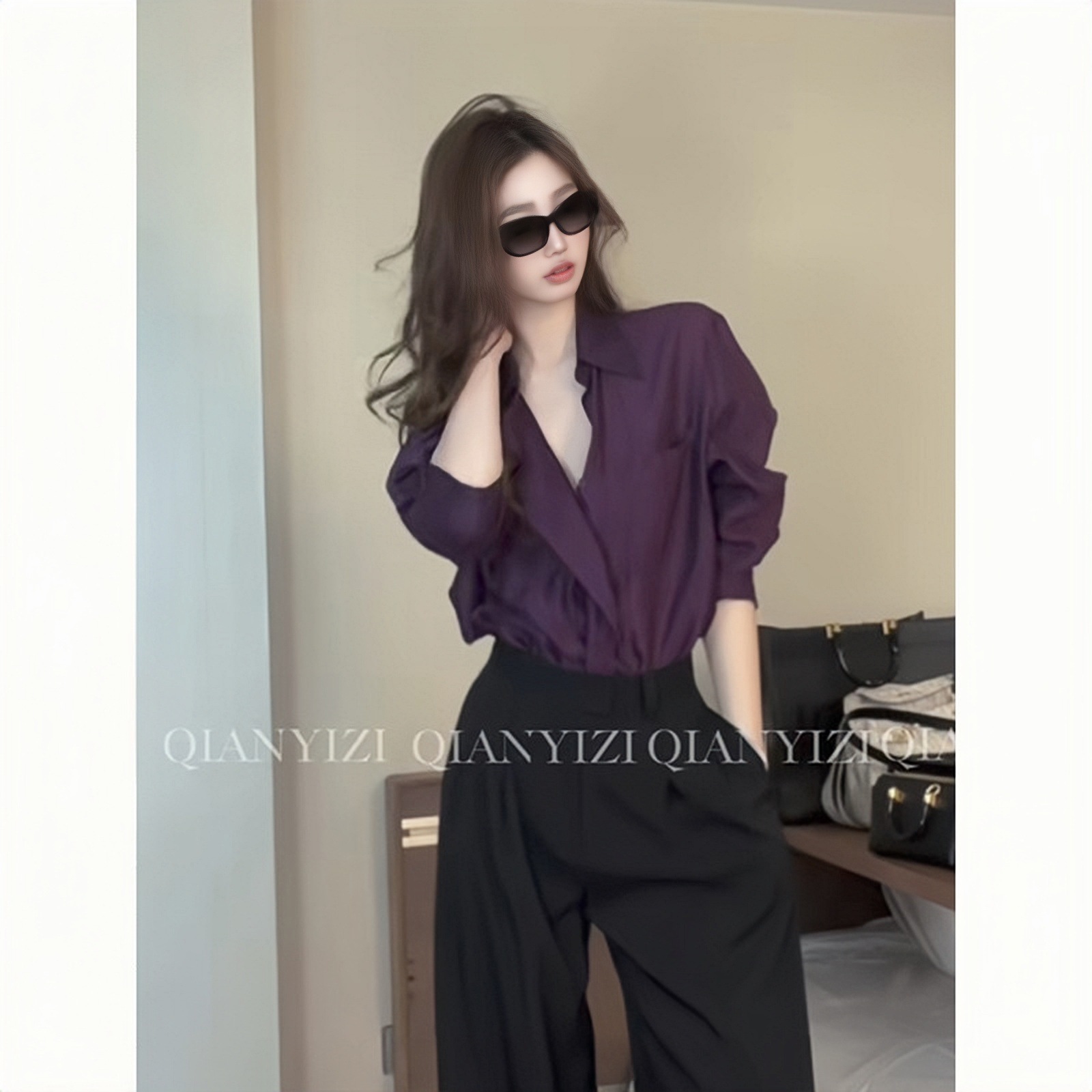 感别致翻领气质长袖衬衫女装春秋新款轻熟风纯欲辣妹百搭上衣