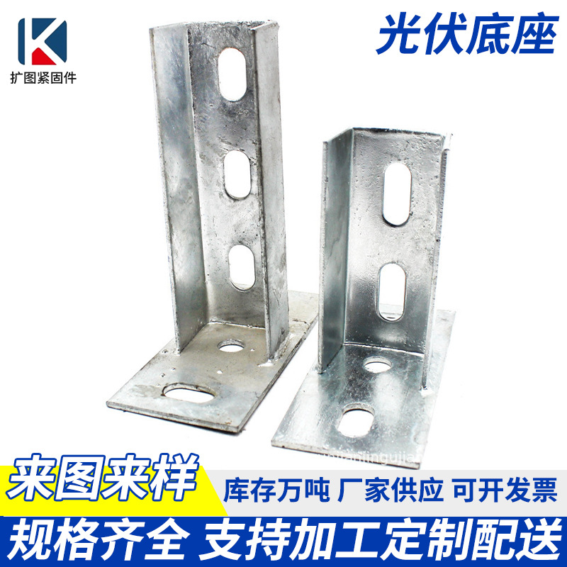 光伏底座免焊接抗震底座热镀锌c型钢开口底座连接件光伏支架配件