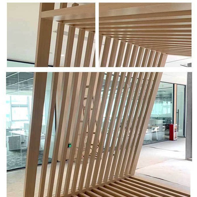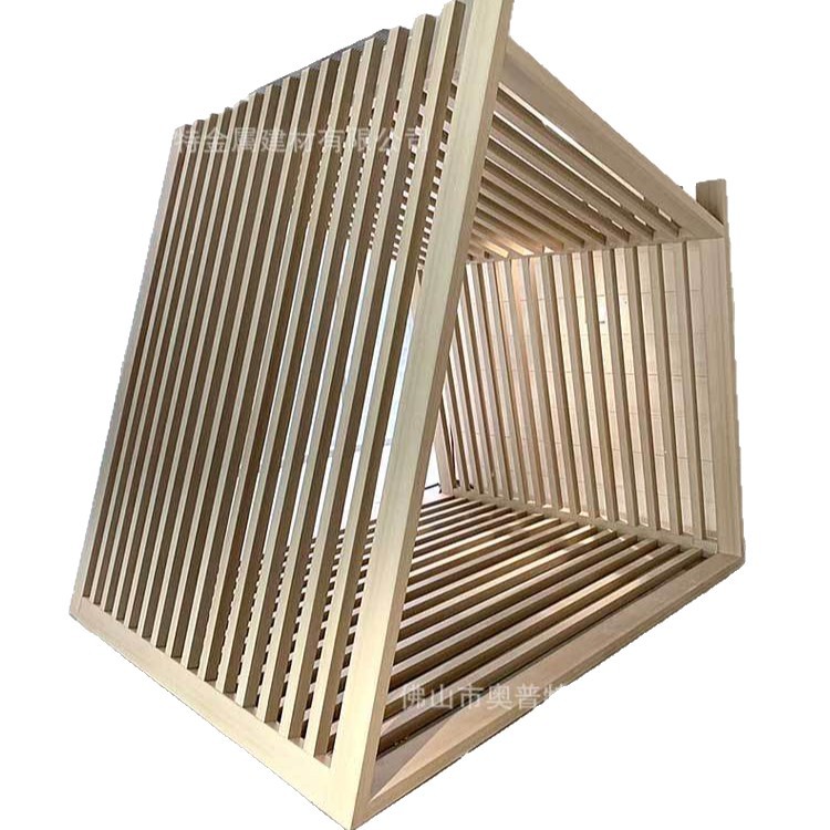 工装铝格栅屏风办公室休闲吊顶材料隔断铝幕墙木纹弧形铝方通定制