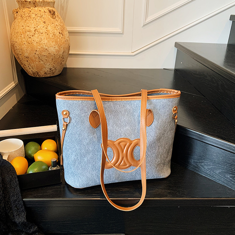 2025撞色拼接大容量上班通勤托特包休闲百搭小众设计简约单肩包女