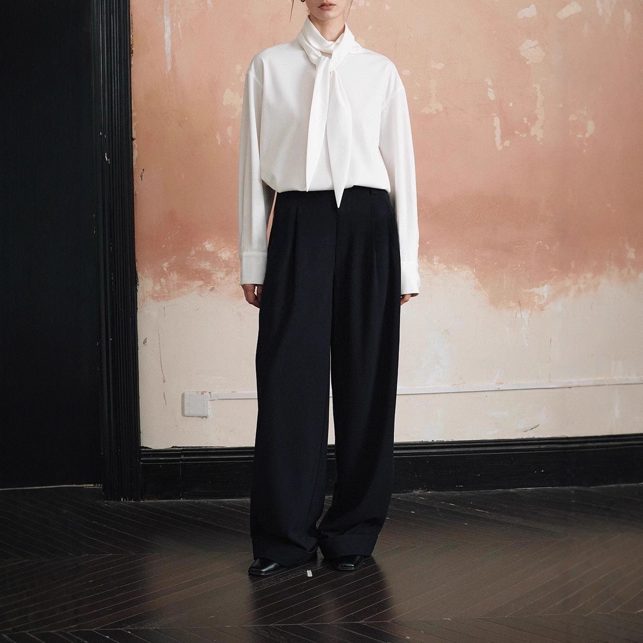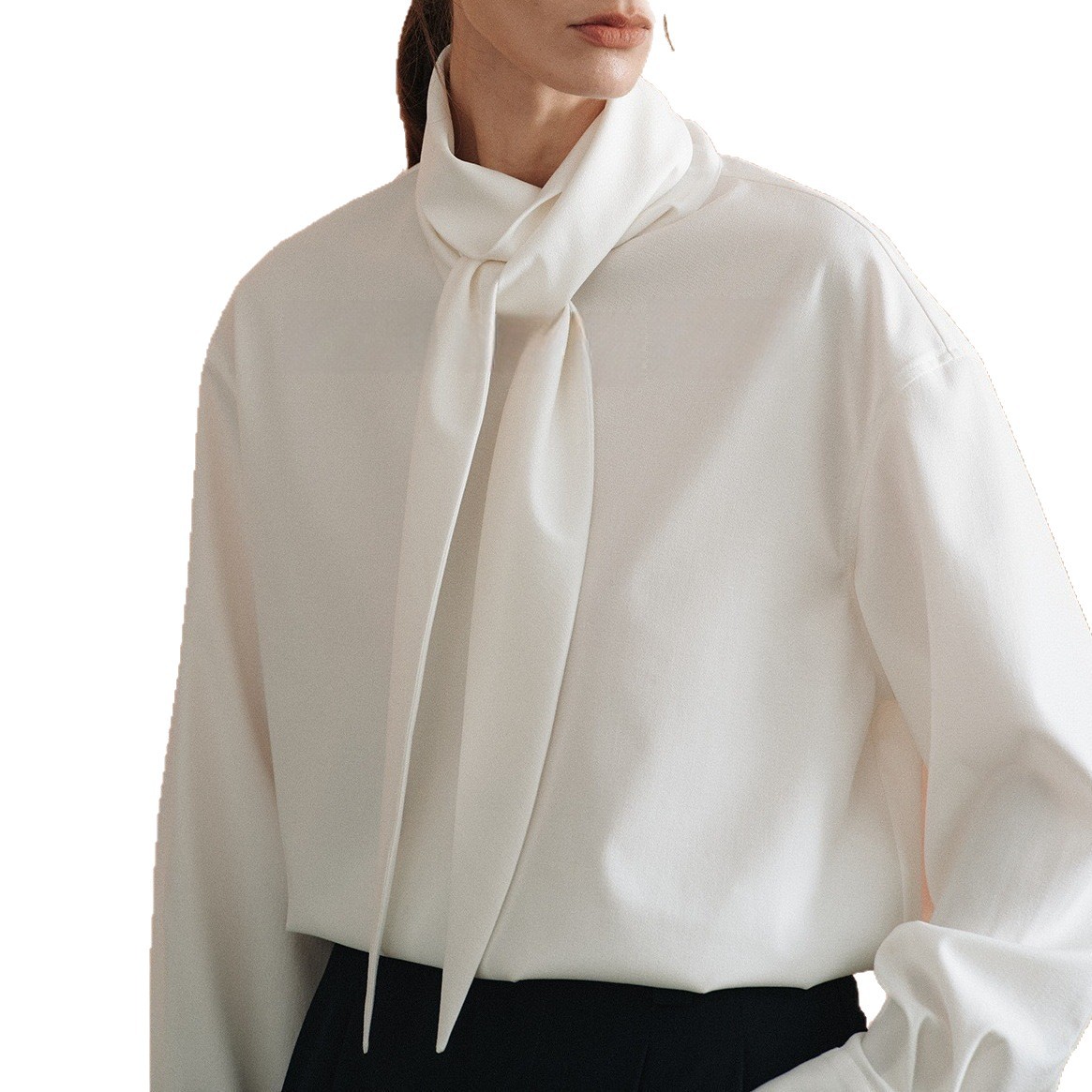 REWEAR/时髦造型 老钱风静奢轻盈舒适高智多穿系带飘带衬衫14096