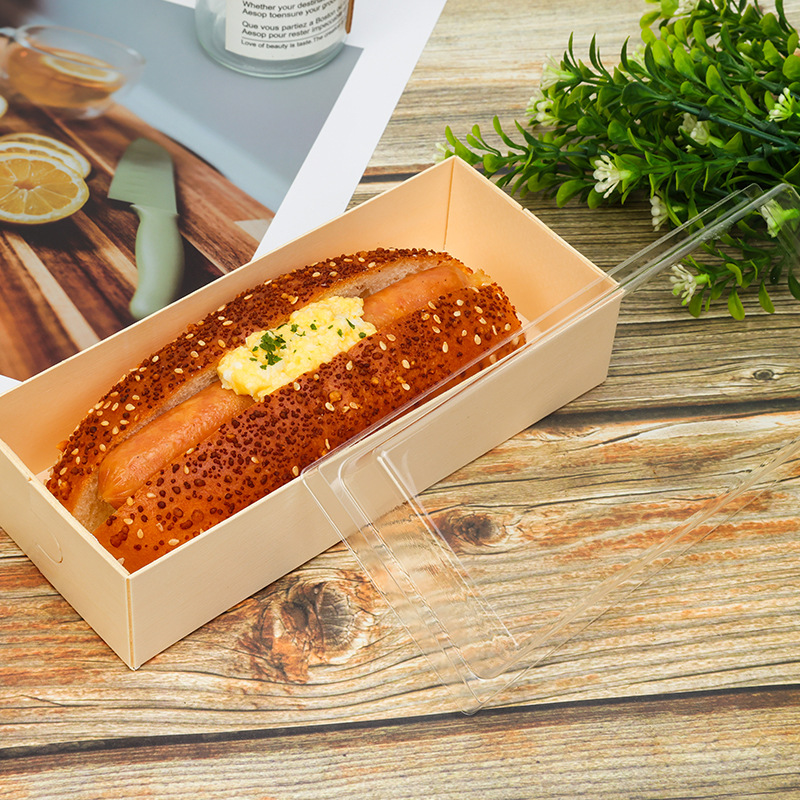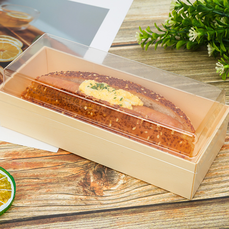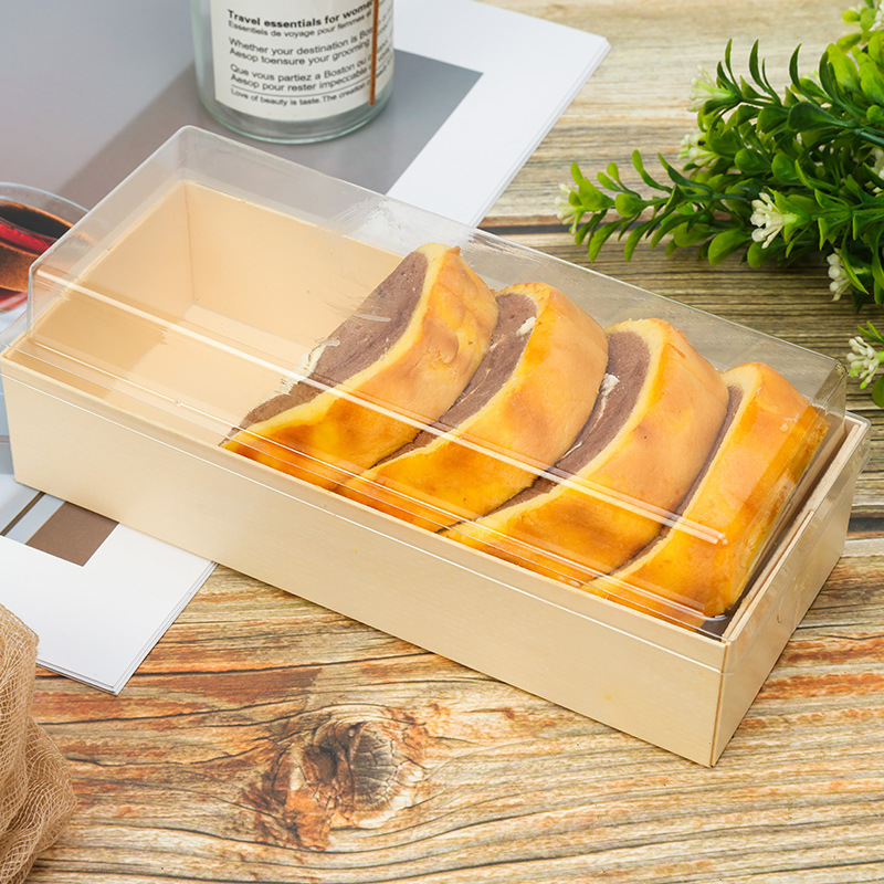 蛋糕包装盒长条形透明吸塑木质盒中式糕点烘焙包装盒子甜点蛋糕卷