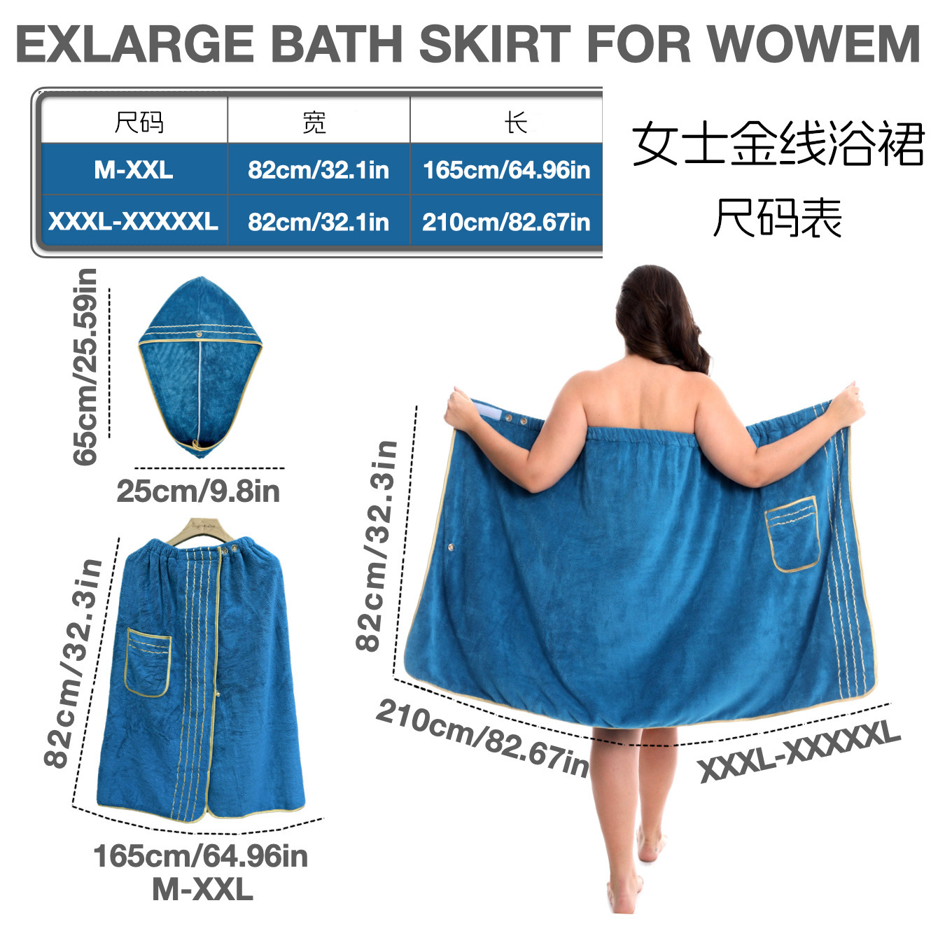 大码珊瑚绒金线浴裙浴帽套装洗澡沐浴可穿浴巾干发帽快速吸水家用